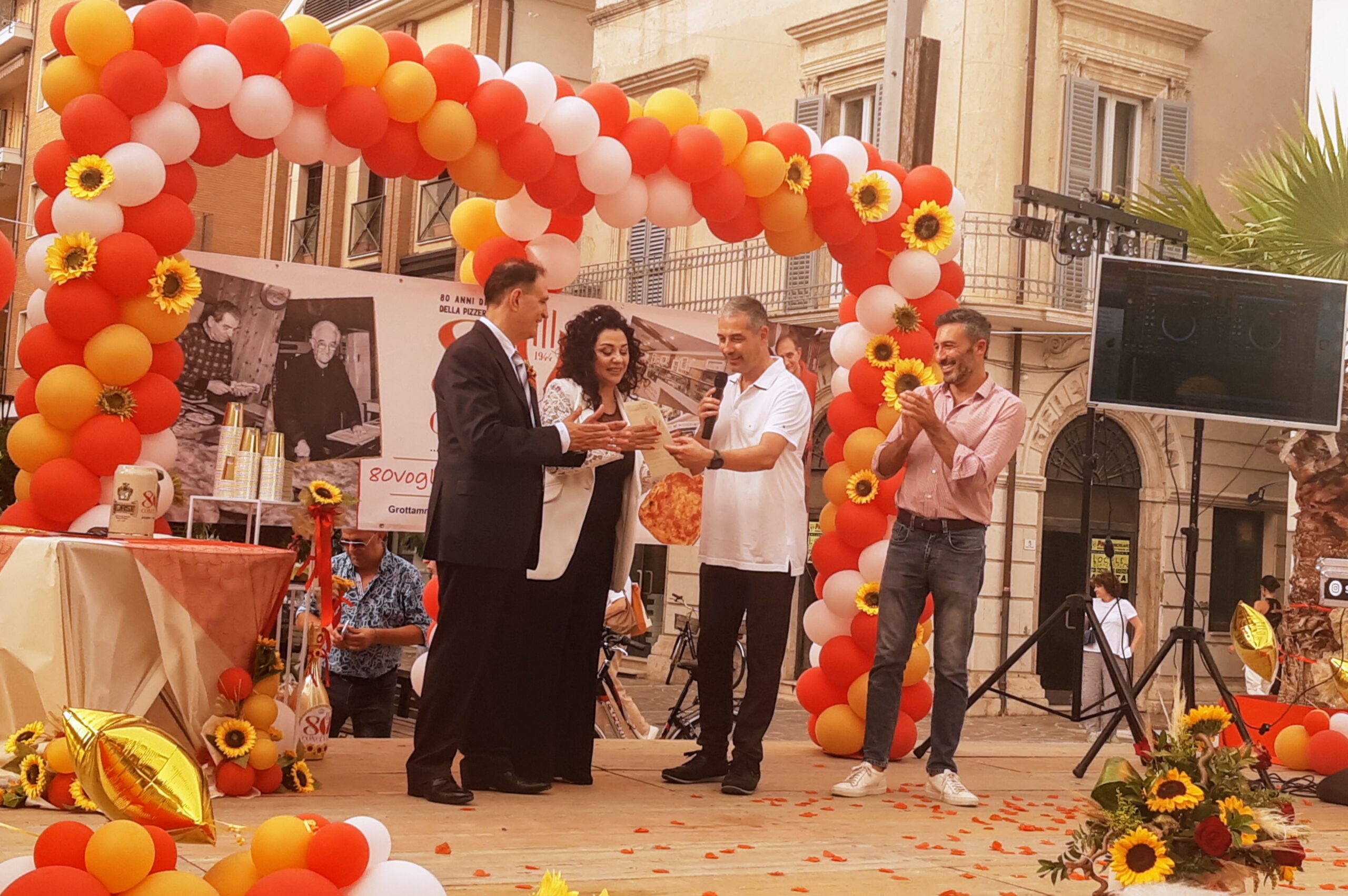 Le parole di apprezzamento sono state sugellate da un riconoscimento ufficiale da parte del Comune di Grottammare: il sindaco Rocchi ha consegnato alla coppia Mario e a Sandra, i due attuali gestori della pizzeria Concetti una pergamena e un mazzo di fiori, riconoscendo nell’attività un “esempio di etica del lavoro e di convivialità”.