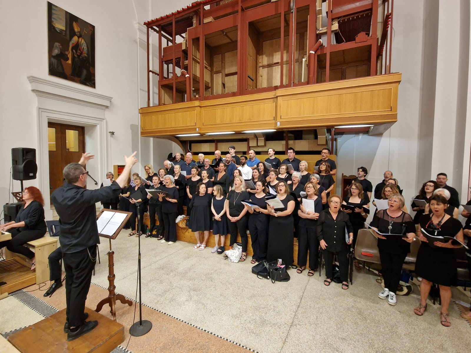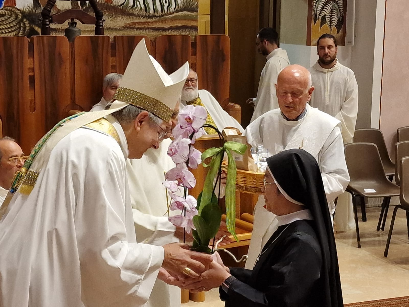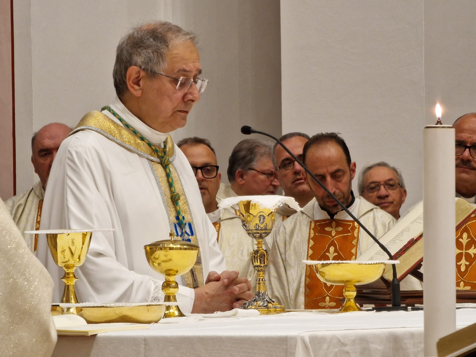 Grazie per quanto hai fatto per questa Cattedrale, perché l’hai sempre voluta più bella. Grazie anche a te è partito il restauro del nostro organo ed infine hai chiesto a don Giorgio Carini – che ringrazio per averti risposto- di realizzare due opere per riempire le lunette sovrastanti gli ingressi di questa nostra Chiesa: la tempesta sedata e la Gerusalemme celeste. Chi vuole entrare troverà riparo nelle tempeste ed uscirà con il desiderio nel cuore di vivere la Gerusalemme celeste.