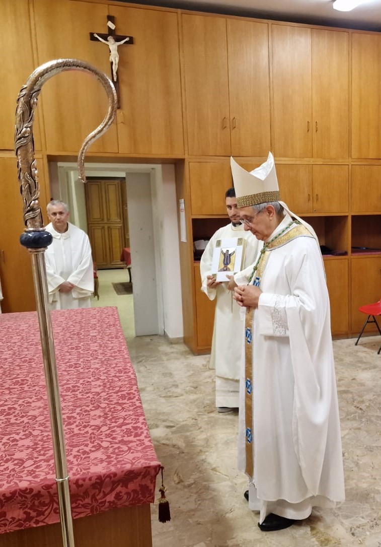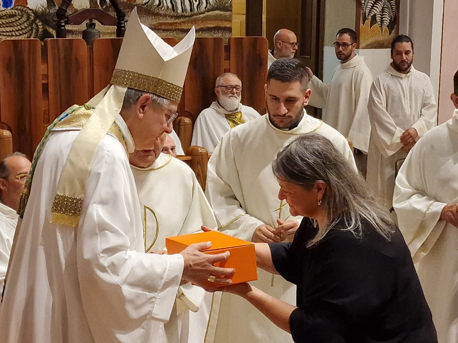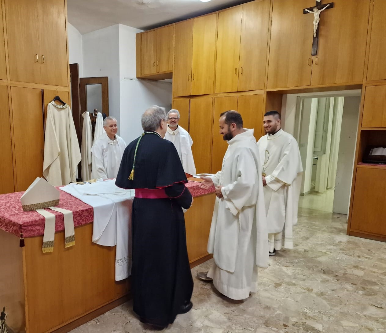 Ti lasciamo un piccolo e semplice dono, che troverà spazio tra i tuoi bagagli: una casula verde, del tempo ordinario, perché l’augurio è di portarci gli uni gli altri con semplicità, facendo del nostro ordinario qualcosa di straordinario, continuando a stimarci e a rimanere amici, al di là delle distanze.