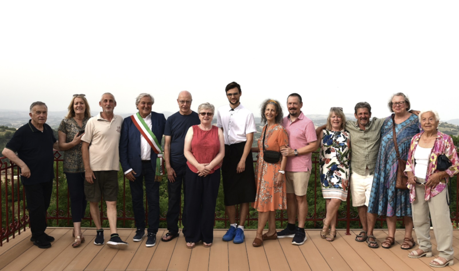 Essi, nel dare loro i saluti e i ringraziamenti di tutta la popolazione montelparese, hanno anche brevemente fatto conoscere un po’ di storia e di arte del nostro piccolo, ma valoroso borgo! A loro che, con grande amore e ammirazione, hanno apprezzato la “stupefacente bellezza del nostro paese e dei nostri territori” (come da’ loro stessi sottolineato!) e a Madeline e Tim Jones che, quali organizzatori dell’avvenimento e proprietari del meraviglioso Hotel, sono stati eccezionali per la grande cordialità, professionalità e preparazione con cui li hanno qui accolti! Anche il simpaticissimo e bravissimo artista Anthony Barrow ha poi dato il suo saluto esprimendo la sua forte ammirazione per il nostro “indimenticabile” paese, per l’accoglienza e la cordialità di tutta la popolazione di Montelparo e di tutti i paesi da loro visitati!