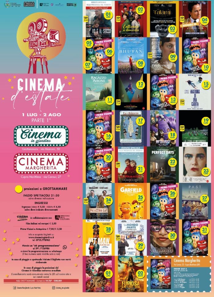 Per gli amanti dell’azione e del fantasy, Furiosa è la novità da non perdere”, annuncia l’organizzatrice Caterina Di Girolami, che aggiunge: “Portiamo a Grottammare un sunto dei più recenti film d’essai. Tutte opere apprezzate dal pubblico che ama i contenuti, in grado di coinvolgerti, che non finiscono con la visione ma proseguono quando esci dalla sala. Quest’anno, poi, la platea del giardino comunale è stata completamente rinnovata, per un’esperienza di visione ancora più confortevole”.