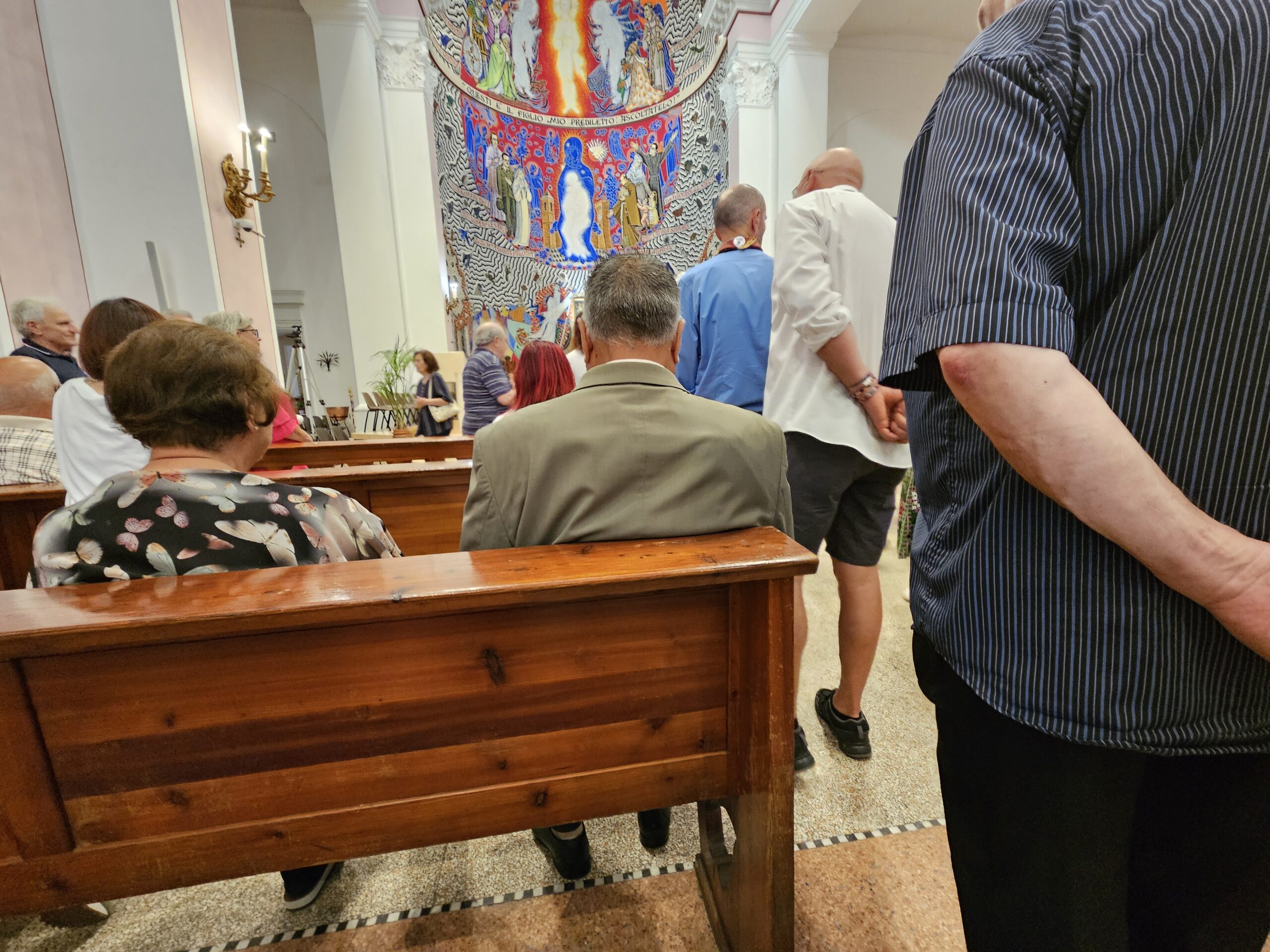“Potrei chiamarvi tutti ad uno ad uno” ha esordito Mons. Pompei all’omelia – alcuni sono di San Benedetto, altri di Centobuchi, altri di Villa Rosa, altri di Grottammare, vi ho voluto veramente bene e vi conosco personalmente tutti”. IL Vicario diocesano, Don Patrizio Spina ha salutato Mons. Federico ricordando che nella chiesa della Madonna della Marina è stato battezzato e consacrato Sacerdote e oggi questa Chiesa della Madonna della Marina è in festa perché Mons. Federico ha oltrepassato la soglia dei 50 anni di Sacerdozio. Molte le associazioni, i gruppi che in qualche modo hanno fatto parte della vita di Monsignore, che hanno voluto essere presenti in questo momento di ricordo e festa gioiosa. Tanti abbracci al termine della celebrazione e soprattutto foto di gruppo con le “comunità” abbracciate da Mons. Federico nel suo cammino sacerdotale.