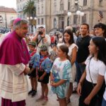 In tutti i luoghi visitati Mons. Gianpiero ha desiderato la benedizione di alcuni fedeli: tre giovani a Centobuchi, un malato al Biancazzurro, due pescatori al Porto. E così ha fatto anche sul sagrato della Cattedrale, dove ha ricevuto la benedizione di tre bambini, che, a sua volta, ha benedetto. Un gesto che, come ha detto poi l’arcivescovo stesso successivamente, durante la Messa, è auspicabile per tutti: per i papà e le mamme prima di mettere a letto i figli, per i catechisti nei confronti dei ragazzi, tra preti.