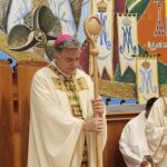 Parlando poi della luce del Vangelo, Mons. Gianpiero ha ringraziato per il dono ricevuto: “Sono rimasto molto colpito dal dono del pastorale. Voi sapete sicuramente che, secondo antiche leggende, la perla nasce da un raggio di luce (un fulmine) che entra nelle profondità del mare, raggiunge l’ostrica, la apre e si trasforma in perla. La perla rappresenta la luce nel fondo dell’abisso. Ecco la Luce del Vangelo! Che entra nelle nostre vite, entra nelle nostre Chiese e diventa un tesoro prezioso. Siamo chiamati a condivedere le perle e farle diventare una ricchezza per ciascuno di noi”.