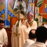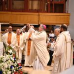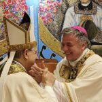 Dopo i riti di Comunione, il vescovo Gianpiero ha voluto ringraziare i numerosi presenti, a partire dalla madre e ha ricordato un gesto che il padre faceva prima di metterlo a letto, ovvero un bacio sulla fronte, segno della benedizione di Dio: “Tutti abbiamo bisogno della benedizione. Oggi ne ho ricevute tante, ma ne manca ancora una molto importante, quella del vescovo Carlo”. Il vescovo emerito Carlo Bresciani ha allora benedetto il suo successore, oltre che con il segno della croce sulla fronte, anche con un abbraccio che ha commosso molti fedeli i quali gli hanno tributato un lungo applauso, colmo di gratitudine per i suoi dieci anni di servizio episcopale. Mons. Gianpiero ha poi ricambiato il dono ricevuto dal vescovo Carlo con un’icona di San Giuseppe, immagine simbolo della paternità.