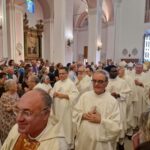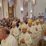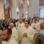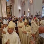 DIOCESI – “Camminiamo insieme, popolo di Dio di San Benedetto del Tronto – Ripatransone – Montalto e di Ascoli Piceno!” – È con queste parole semplici, ma significative, che l‘arcivescovo Gianpiero Palmieri ha concluso la sua prima omelia rivolta ai fedeli della Diocesi Truentina che lo hanno accolto con affetto e calore. La Basilica Cattedrale Santa Maria della Marina in San Benedetto del Tronto è apparsa gremita di fedeli, così come piazza Nardone dove è stato allestito un maxischermo per permettere a tutti i convenuti di seguire la prima Messa del nuovo vescovo. Presenti la madre, il fratello e molti amici di Mons. Gianpiero giunti per lui appositamente da Roma, da Ascoli e da diversi comuni delle Marche. Numerose anche le autorità ecclesiastiche, civili e militari che hanno partecipato alla Celebrazione.