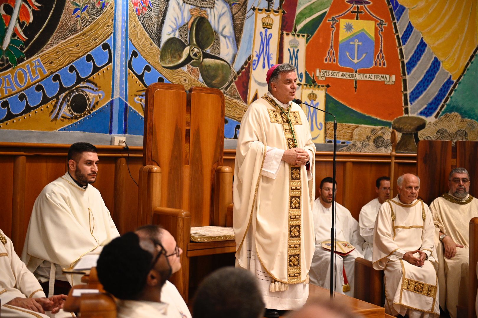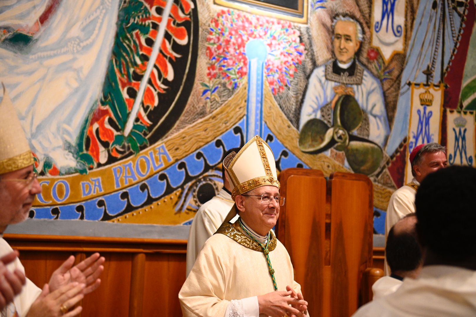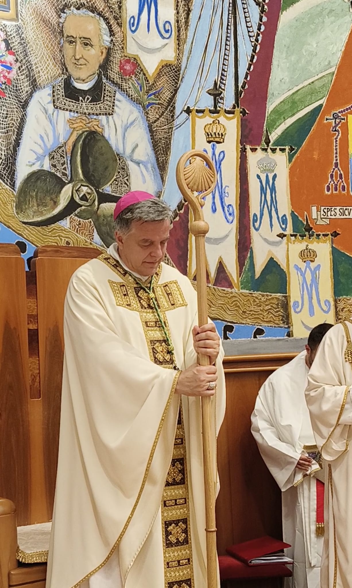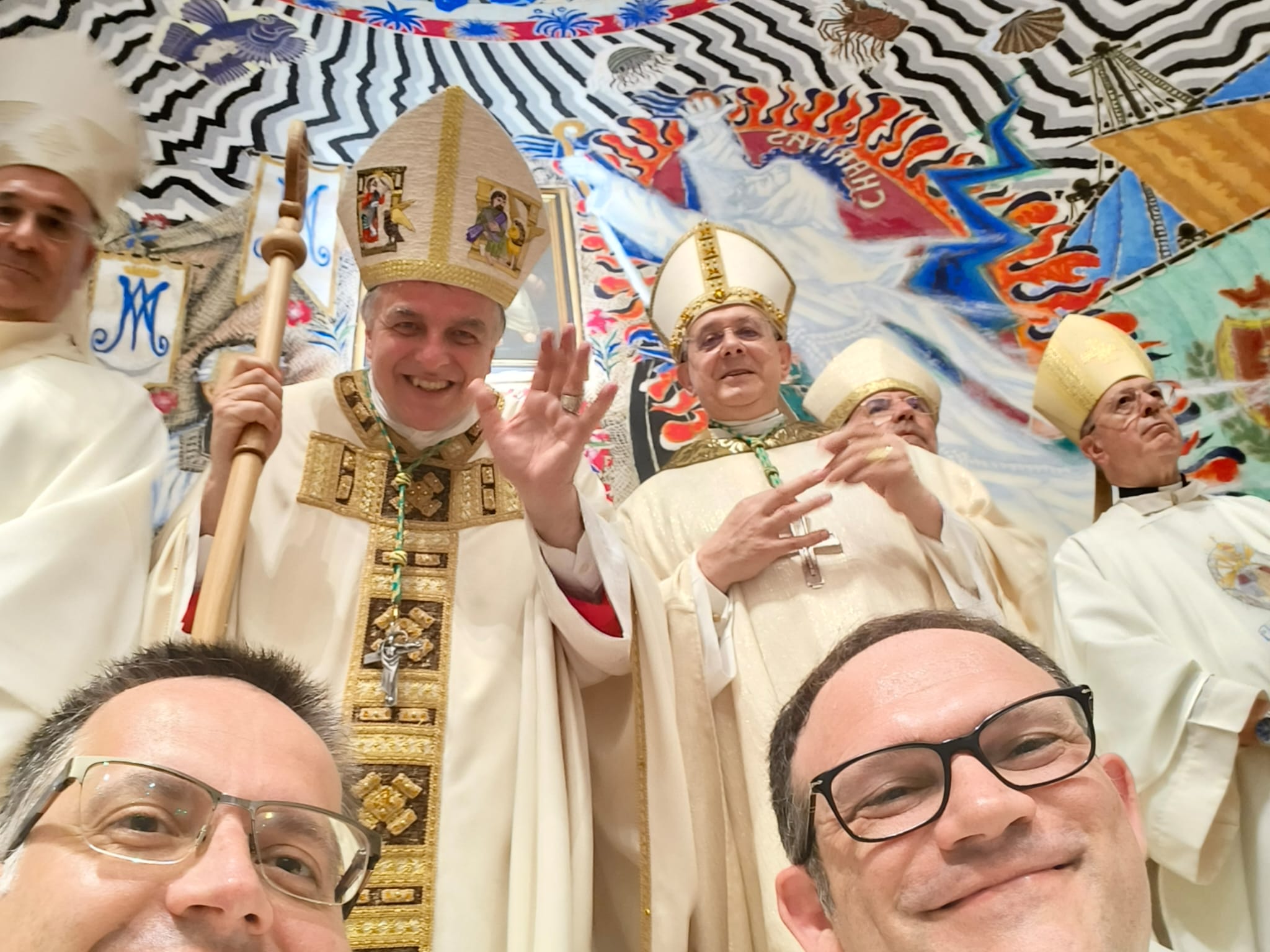 Parlando poi della luce del Vangelo, Mons. Gianpiero ha ringraziato per il dono ricevuto: “Sono rimasto molto colpito dal dono del pastorale. Voi sapete sicuramente che, secondo antiche leggende, la perla nasce da un raggio di luce (un fulmine) che entra nelle profondità del mare, raggiunge l’ostrica, la apre e si trasforma in perla. La perla rappresenta la luce nel fondo dell’abisso. Ecco la Luce del Vangelo! Che entra nelle nostre vite, entra nelle nostre Chiese e diventa un tesoro prezioso. Siamo chiamati a condivedere le perle e farle diventare una ricchezza per ciascuno di noi”.