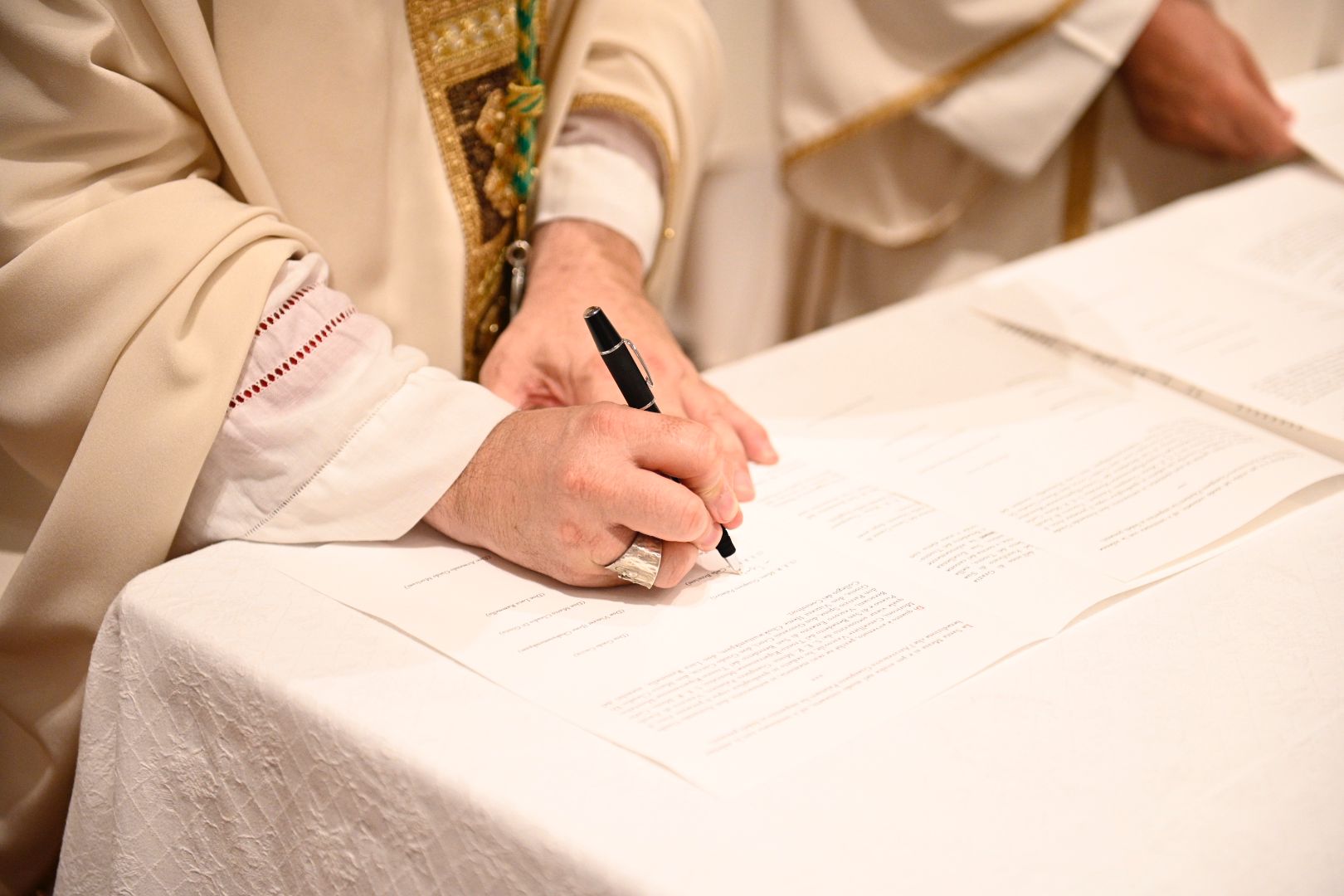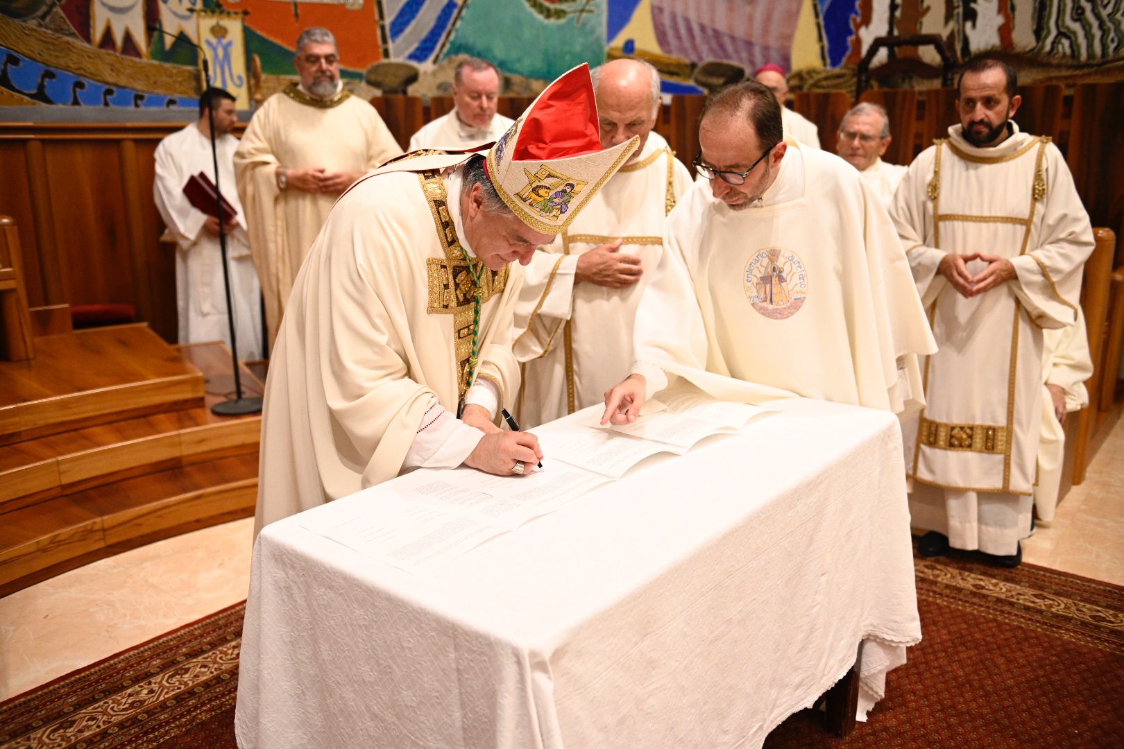 Prima della benedizione finale il cancelliere ha dato lettura del verbale di avvenuta presa di possesso della Diocesi, che è poi stato sottoscritto dall’arcivescovo Gianpiero Palmieri, dal vescovo emerito Carlo Bresciani, dal cancelliere stesso don Armando Moriconi e dai membri del Collegio dei Consultori: don Patrizio Spina, don Giovanni Croci, don Guido Coccia, don Marco Claudio Di Giosia, don Vincent Ifeme e don Luca Rammella.