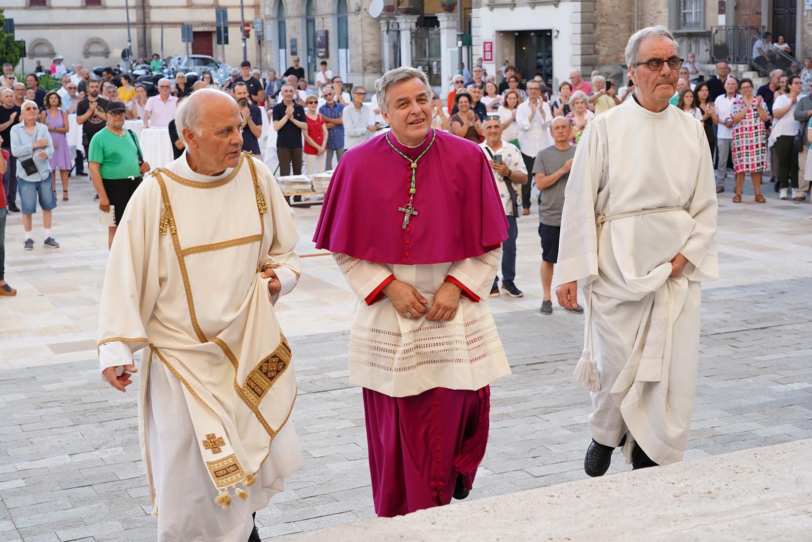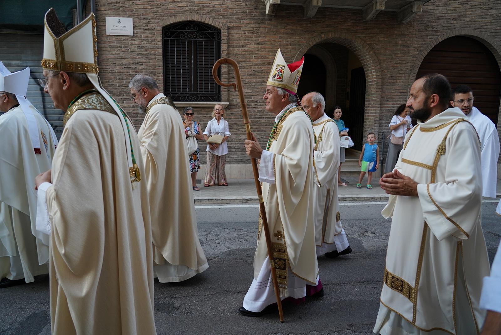 Mons. Palmieri ha poi ringraziato anche gli altri vescovi giunti dalle Marche e da Roma per vivere con lui questo momento: mons. Angelo Spina, arcivescovo metropolita di Ancona – Osimo; mons. Rocco Pennacchio, arcivescovo di Fermo, nostro metropolita; mons. Nazzareno Marconi, vescovo di Macerata e presidente CEM (conferenza Episcopale Marchigiana); mons. Franco Manenti, vescovo di Senigallia; mons. Piero Coccia, vescovo emerito di Pesaro; mons. Benoni Ambarus e mons. Paolo Ricciardi, vescovi ausiliari di Roma.