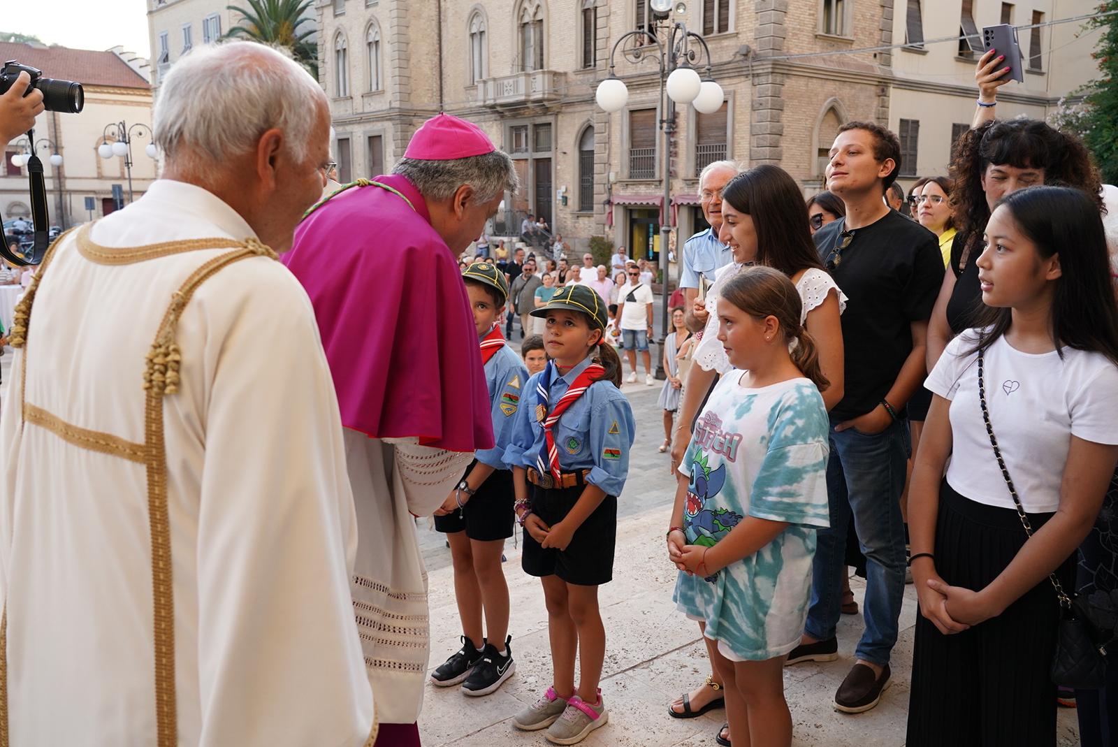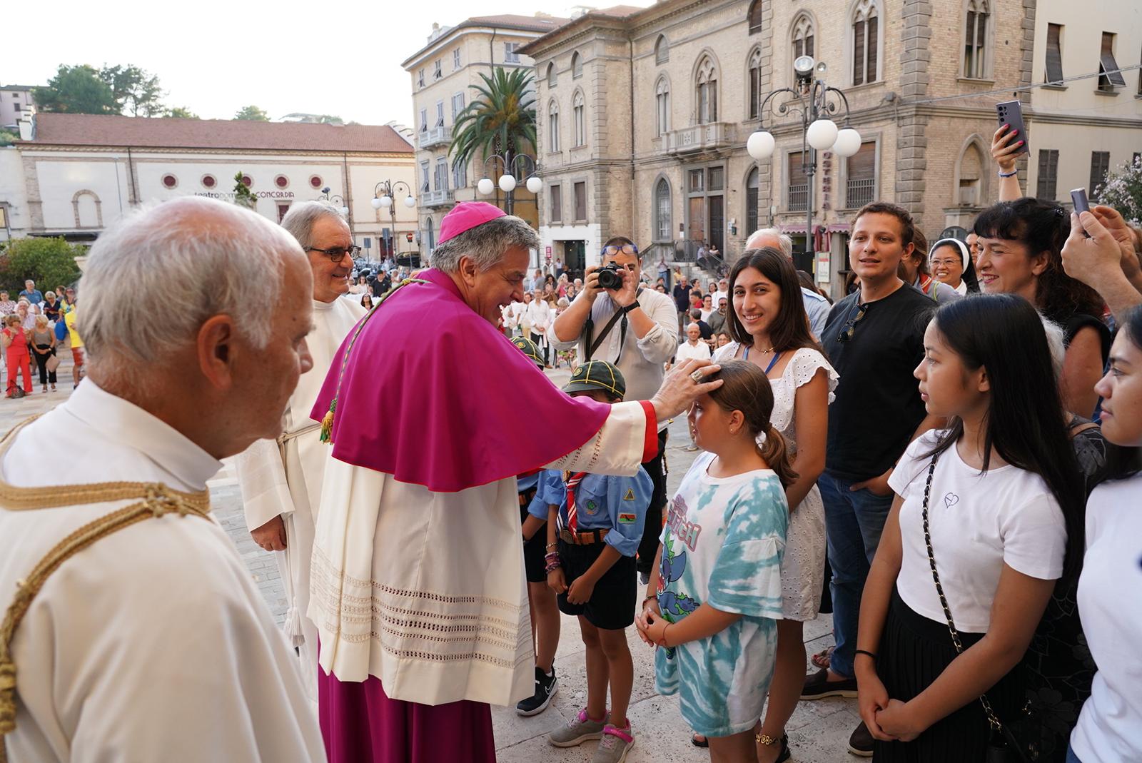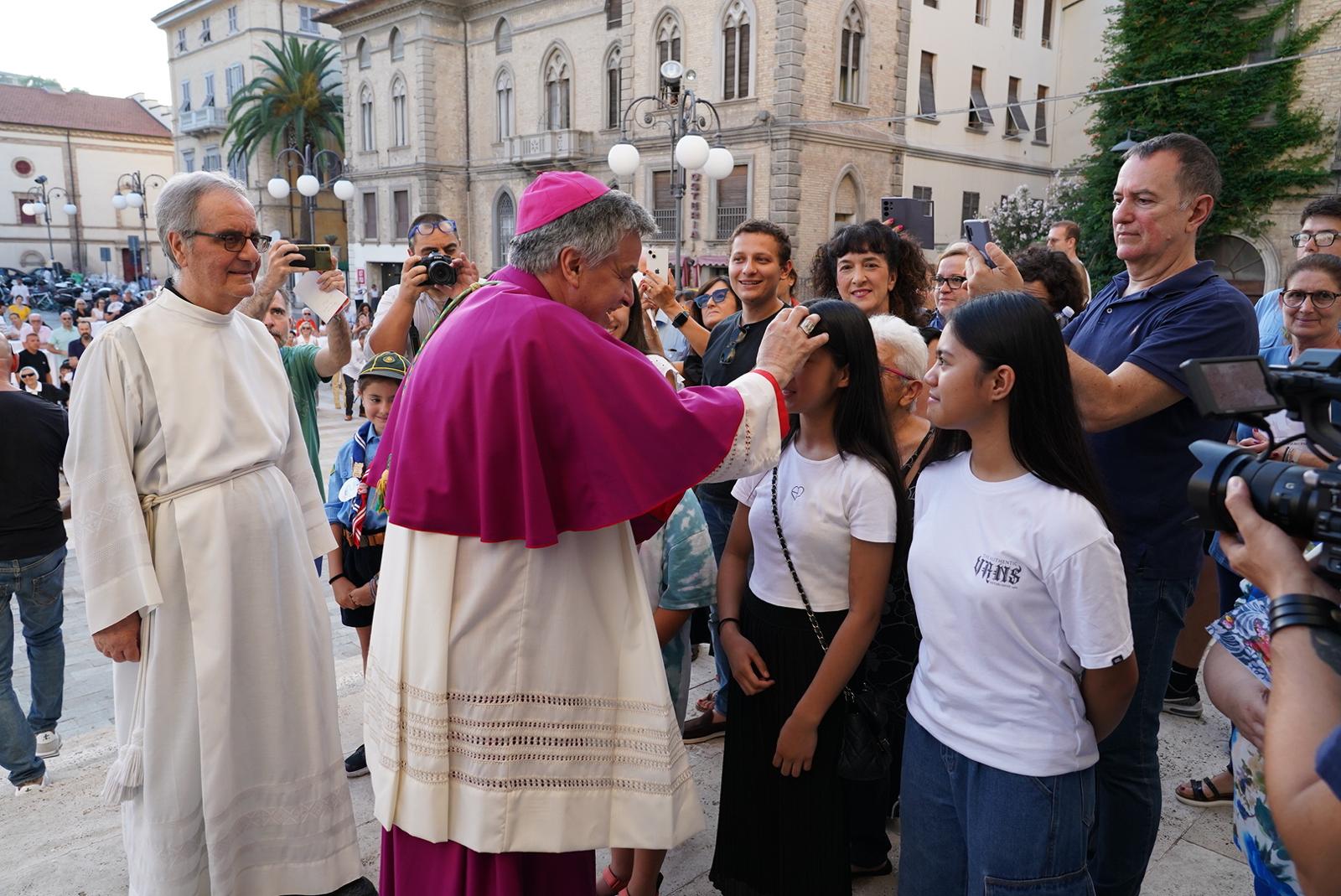 In tutti i luoghi visitati Mons. Gianpiero ha desiderato la benedizione di alcuni fedeli: tre giovani a Centobuchi, un malato al Biancazzurro, due pescatori al Porto. E così ha fatto anche sul sagrato della Cattedrale, dove ha ricevuto la benedizione di tre bambini, che, a sua volta, ha benedetto. Un gesto che, come ha detto poi l’arcivescovo stesso successivamente, durante la Messa, è auspicabile per tutti: per i papà e le mamme prima di mettere a letto i figli, per i catechisti nei confronti dei ragazzi, tra preti.