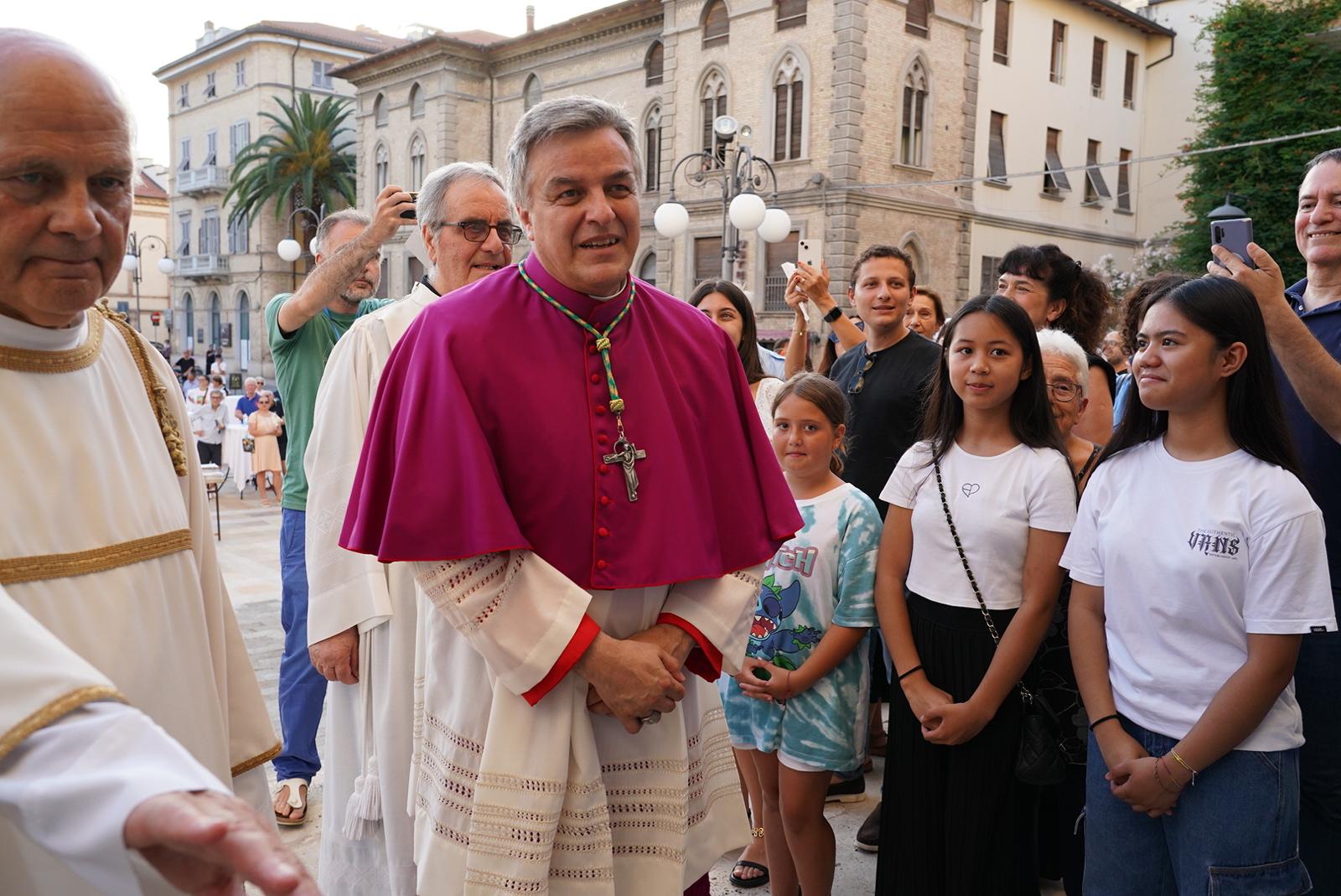 DIOCESI – “Camminiamo insieme, popolo di Dio di San Benedetto del Tronto – Ripatransone – Montalto e di Ascoli Piceno!” – È con queste parole semplici, ma significative, che l‘arcivescovo Gianpiero Palmieri ha concluso la sua prima omelia rivolta ai fedeli della Diocesi Truentina che lo hanno accolto con affetto e calore. La Basilica Cattedrale Santa Maria della Marina in San Benedetto del Tronto è apparsa gremita di fedeli, così come piazza Nardone dove è stato allestito un maxischermo per permettere a tutti i convenuti di seguire la prima Messa del nuovo vescovo. Presenti la madre, il fratello e molti amici di Mons. Gianpiero giunti per lui appositamente da Roma, da Ascoli e da diversi comuni delle Marche. Numerose anche le autorità ecclesiastiche, civili e militari che hanno partecipato alla Celebrazione.