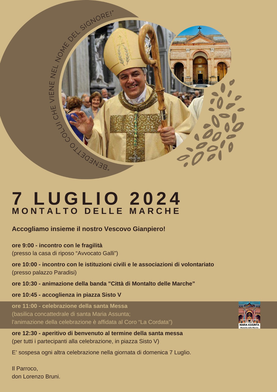 MONTALTO DELLE MARCHE – Dopo l’ingresso di Domenica 30 Giugno 2024, presso la Basilica Cattedrale Santa Maria della Marina in San Benedetto del Tronto, l’arcivescovo Gianpiero Palmieri, nuovo vescovo della Diocesi di San Benedetto del Tronto – Ripatransone – Montalto, visiterà anche le altre due città, sedi delle Concattedrali. La prima tappa sarà il prossimo 7 Luglio 2024, a Montalto delle Marche, “patria carissima” di Papa Sisto V.