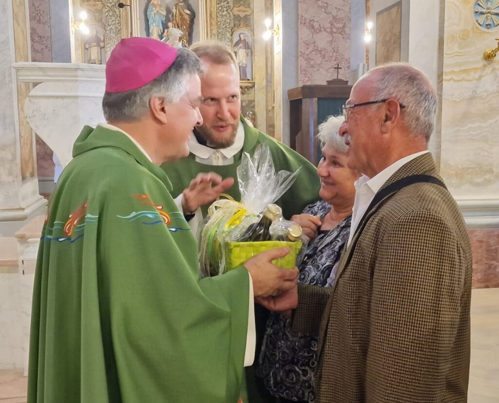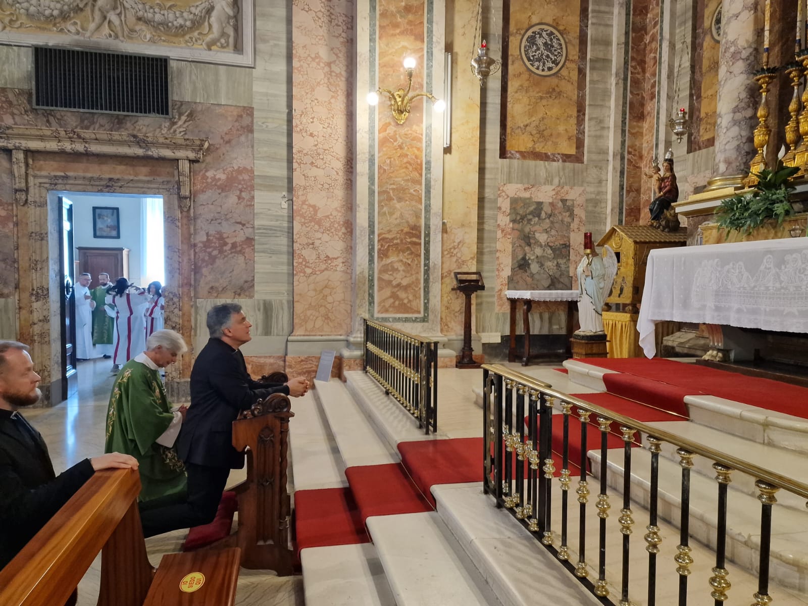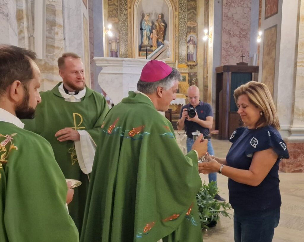 Al termine della Messa, mons. Gianpiero ha salutato i fedeli presenti in Cattedrale e poi si è recato all’esterno dell’edificio sacro per vivere un momento di convivialità insieme a tutti i partecipanti alla celebrazione. L’aperitivo, ricco e consumato in amicizia nel pronao della Cattedrale, è stato preparato dai parrocchiani di contrada Lago in Valdaso.