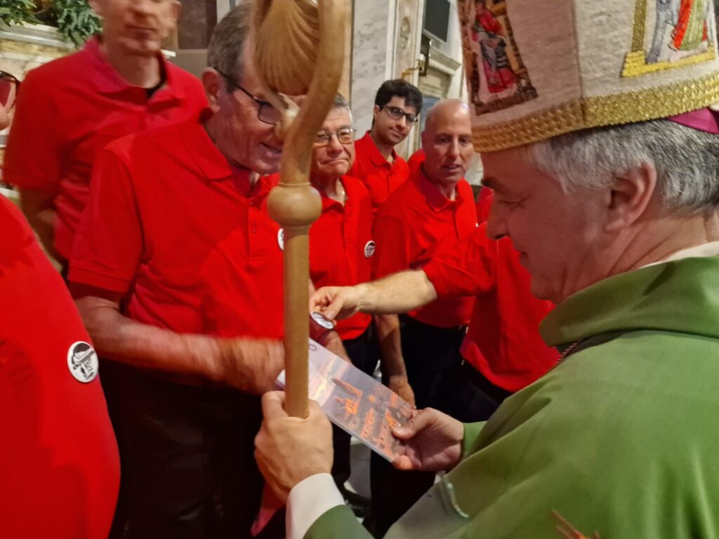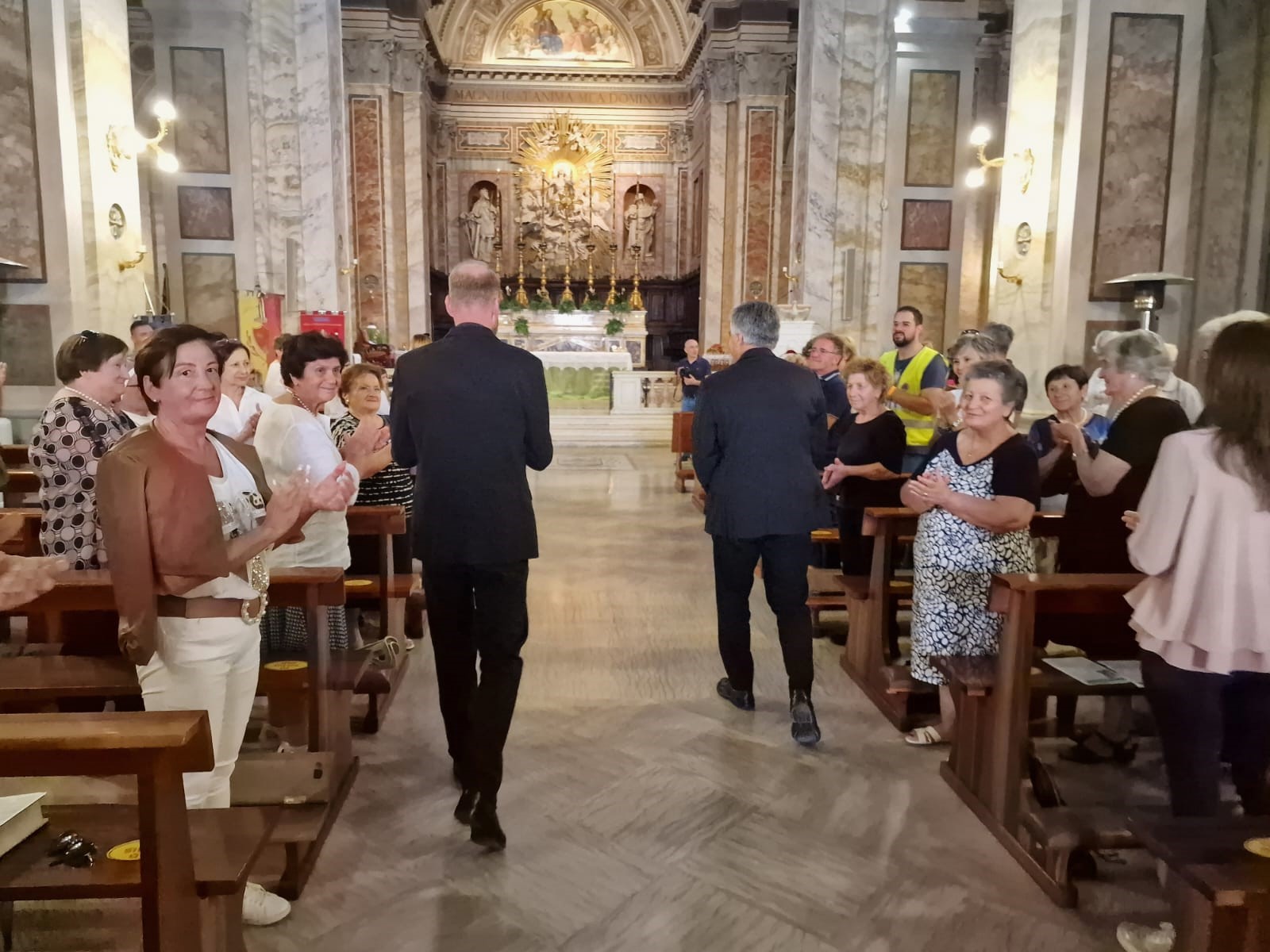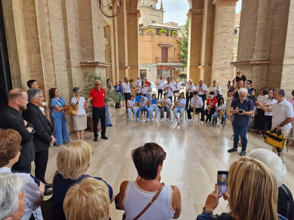 Il vescovo Palmieri si è poi diretto verso la Basilica Concattedrale, percorrendo le vie della città, accompagnato dal rintocco armonioso e gioioso delle campane che suonavano a festa per il suo ingresso. Ad attenderlo sul sagrato antistante l’edificio sacro, c’era la Banda “Città di Montalto delle Marche” che ha allietato gli animi dei presenti con la musica di musicisti esperti, uniti a nuove e giovani leve che fanno ben sperare per il futuro.