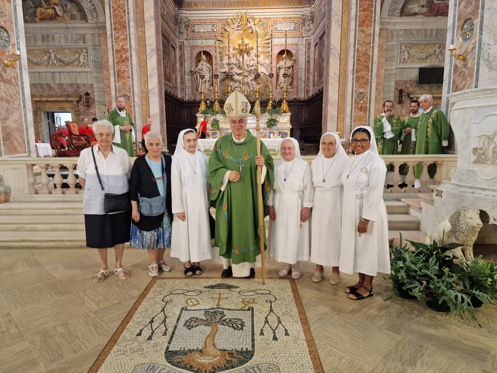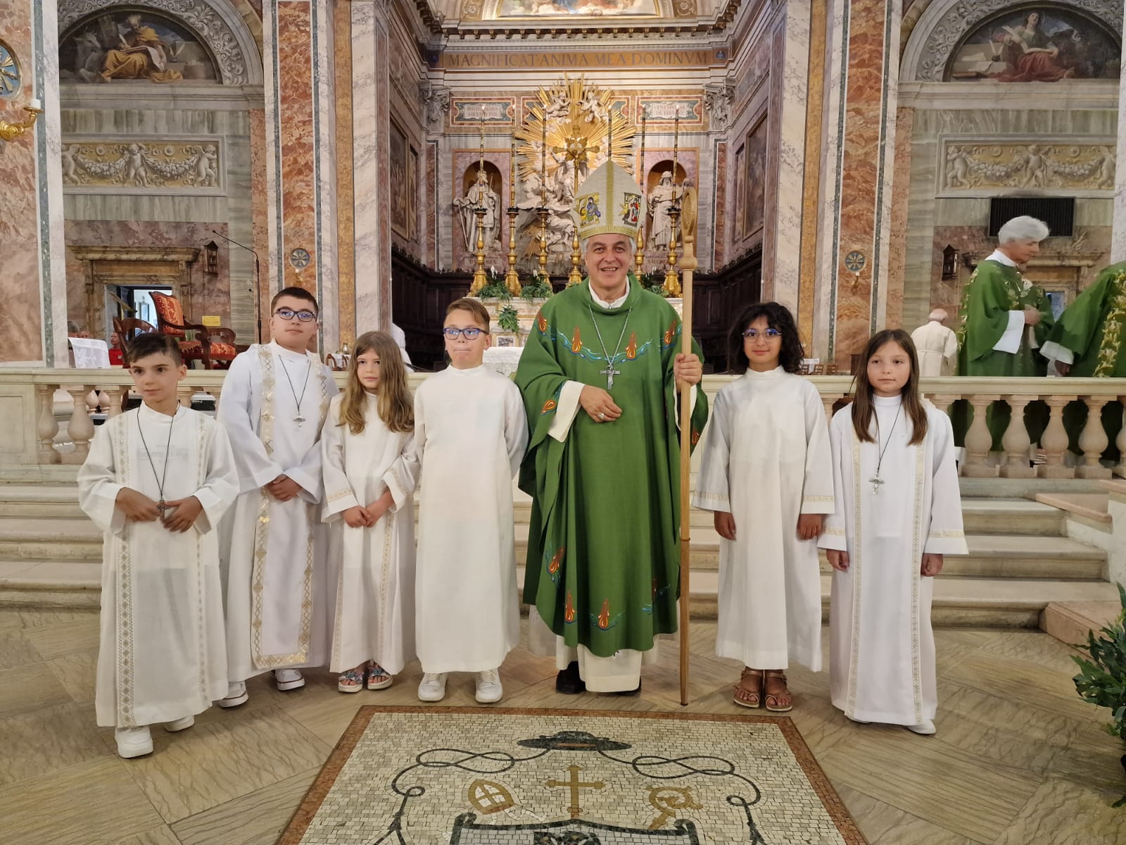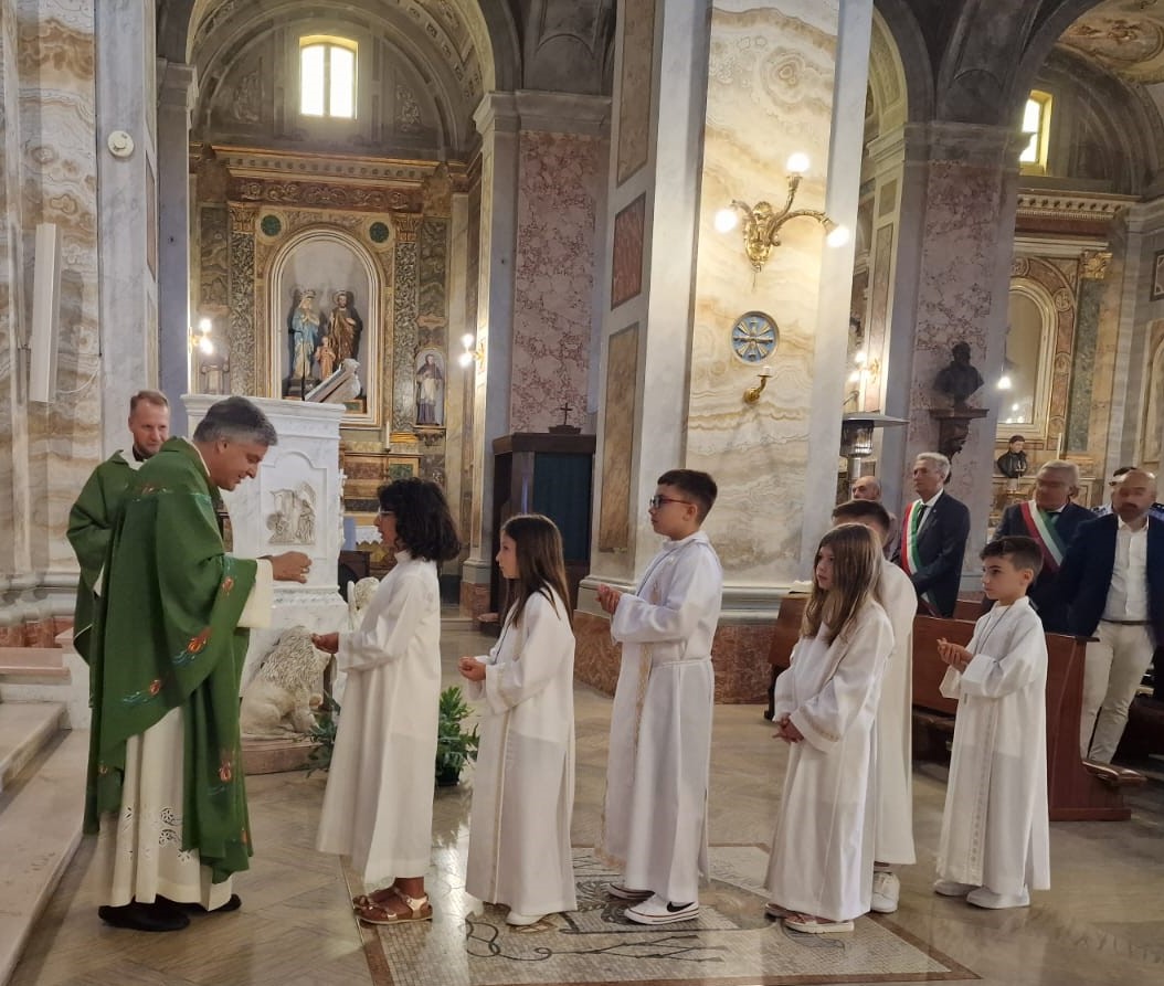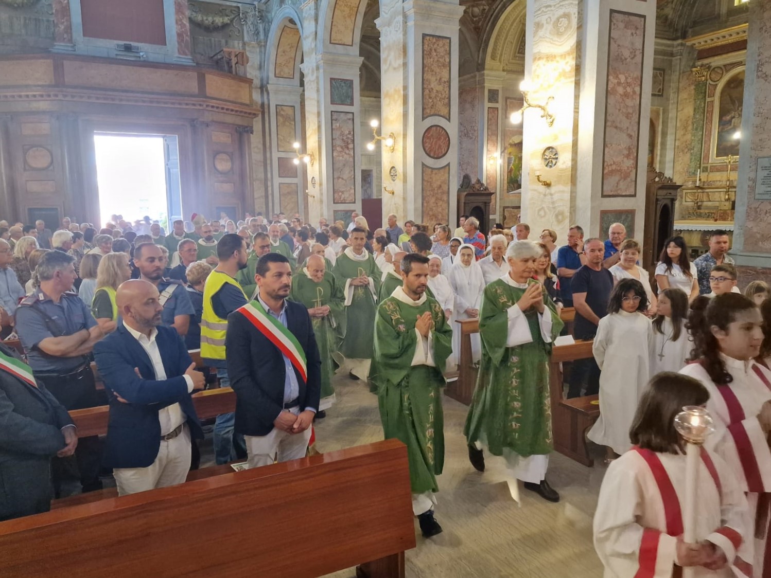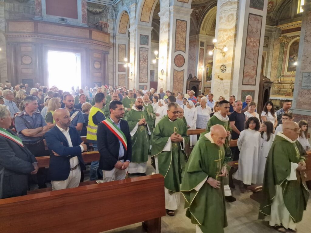 Tra gli applausi dei fedeli, alle ore 11:00, l’arcivescovo Gianpiero ha fatto poi il suo ingresso nella Concattedrale, dove ha celebrato la Santa Messa, che ha registrato la partecipazione dei quattro bambini montaltesi che hanno ricevuto la loro Prima Comunione Domenica 30 Giugno e di alcune Suore Pie Operaie dell’Immacolata Concezione dalla Casa Madre di Ascoli Piceno, guidate da Suor Paola Giobbi, insieme ad alcuni esponenti dell’associazione “Amici del Marcucci”, loro fondatore che fu vescovo di Montalto.