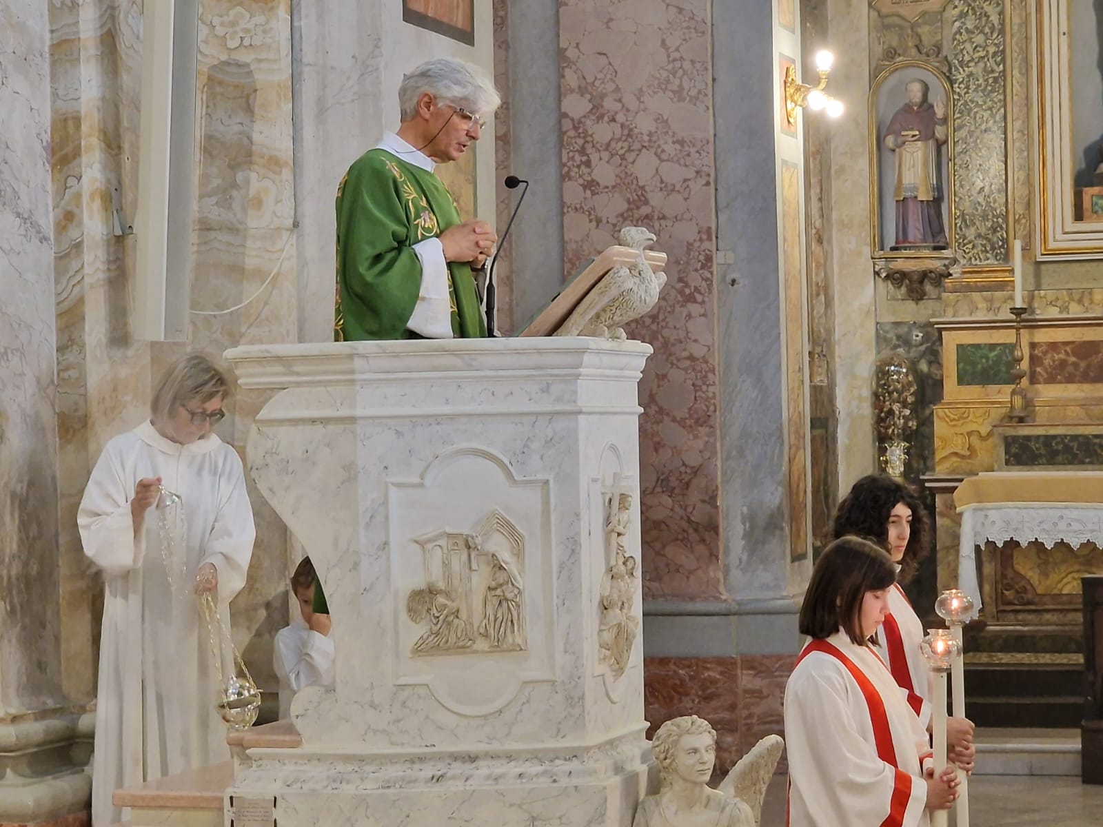 Sempre sulla figura del profeta, il vescovo Palmieri ha proseguito: “Gesù ci dice che il profeta non è migliore di nessuno. E fa bene il profeta a non sentirsi migliore di nessuno. Facciamo bene noi preti a non sentirci migliori di nessuno. Avete ascoltato cosa dice San Paolo nella Seconda Lettura? Sente una spina nella carne. Non sappiamo cosa fosse. Ma sappiamo che Paolo un po’ si vergognava di sé: era piccolino; quando lo guardavano, dicevano ‘il Paolo delle lettere infuocate’; ma soprattutto pare che avesse un difetto nel parlare, forse la balbuzie. Immaginate uno che parte tutto infuocato nell’annunciare, ma poi inizia a balbettare. La gente non lo prendeva sul serio. Paolo dice che tante volte ha pregato il Signore, affinché gli togliesse questa spina nella carne. Ma il Signore gli ha risposto: ‘Ti basta la mia grazia; la forza infatti si manifesta pienamente nella debolezza’. Certe volte ciascuno di noi è tentato di non dire la Parola di Dio, perché si sente un peccatore. Ma non va bene. O meglio, faccio bene a sentire che sono il più peccatore di tutti, mentre dico quella Parola. Ma devo dirla, perché quella Parola di Dio salva me e salva l’altro. Papa Francesco dice spesso a noi preti che, quando ci vestiamo in sagrestia e ci mettiamo i paramenti, ci sentiamo peccatori e ci prende una grande vergogna; ma, allo stesso tempo, ci sentiamo anche una grande dignità, perché stiamo agendo in persona Christi. Tra dignità e vergogna ci sentiamo spaccati dentro. Ma ci fa bene sentirci spaccati dentro – ci dice il pontefice – spaccati tra dignità e vergogna, tra l’essere figli di Dio e ministri dell’altare da una parte e l’essere peccatori dall’altra. Quando chiediamo al Signore di liberarci dal nostro peccato, Egli ci risponde: ‘Basta la mia grazia. La mia potenza si manifesta nella tua debolezza’. Così dice Dio a San Paolo e così dice a ciascuno di noi.