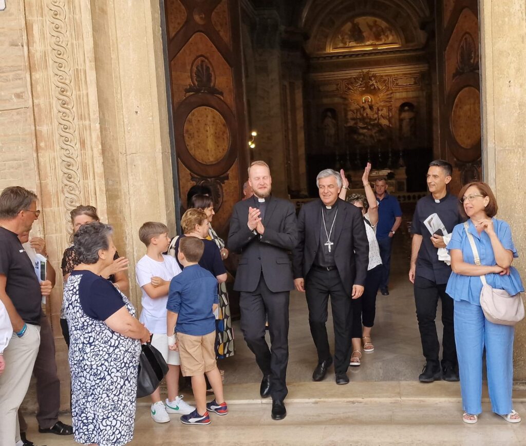 È con queste parole semplici, ma cariche di significato e di gioia, che l’arcivescovo Gianpiero Palmieri ha iniziato la sua prima omelia rivolta ai fedeli delle quattro comunità montaltesi riunite Domenica 7 Luglio, alle ore 11:00, presso la Basilica Concattedrale Santa Maria Assunta in Montalto delle Marche per la solenne celebrazione eucaristica che ha sancito l’ingresso del nuovo vescovo della Diocesi di San Benedetto del Tronto – Ripatransone – Montalto “nella patria carissima” di papa Sisto V.