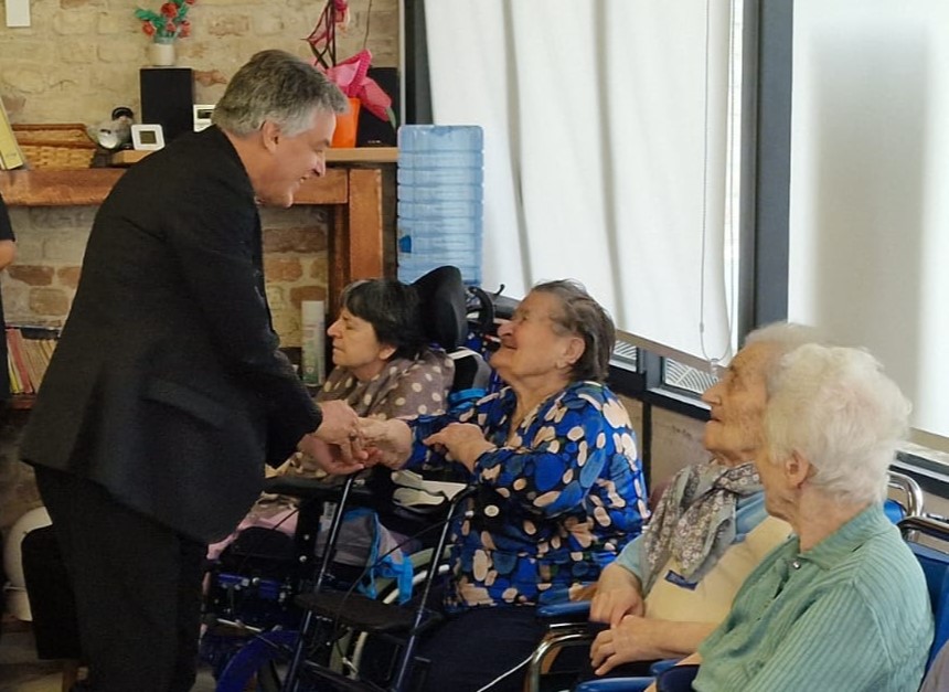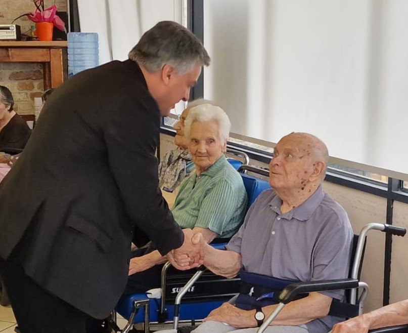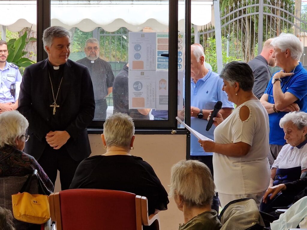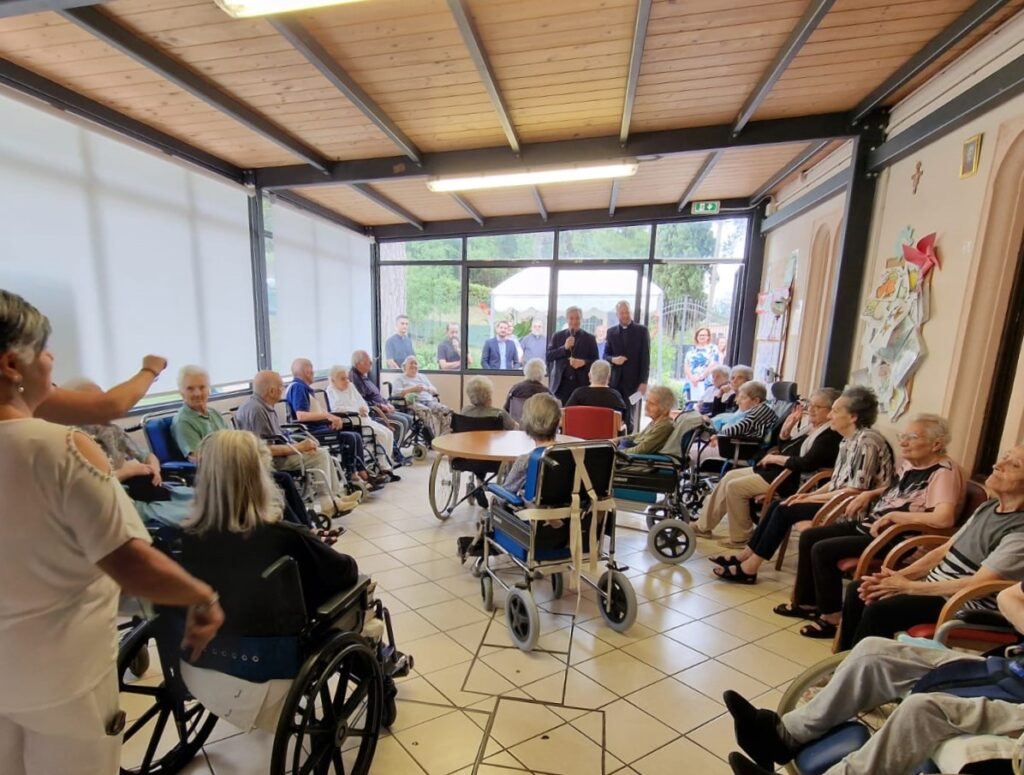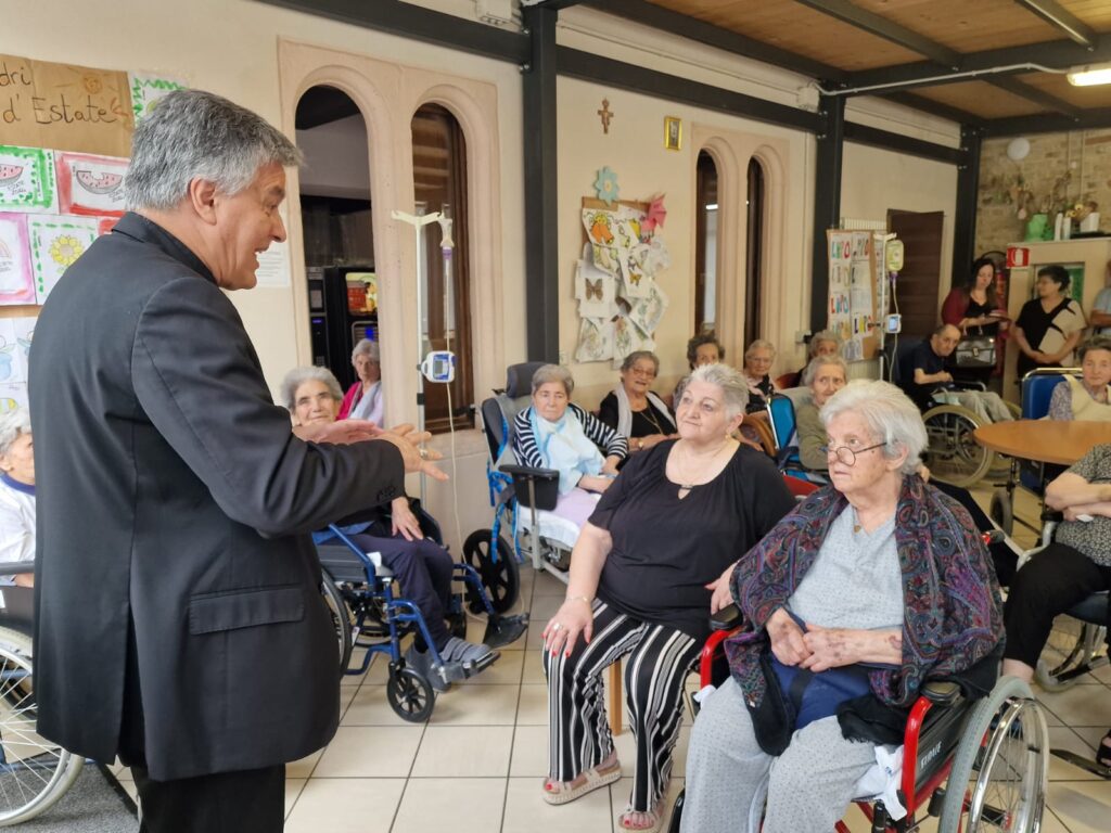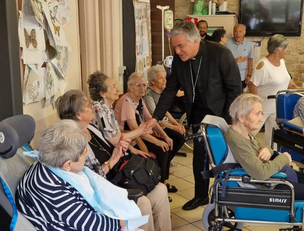 Qui il vescovo ha incontrato il mondo della fragilità, in particolare gli anziani, i malati e il personale che li assiste, salutandoli ad uno ad uno.