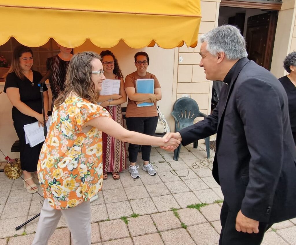 L’incontro si è concluso con un momento di convivialità all’aperto, nel piazzale antistante la struttura, dopo il quale il vescovo Palmieri ha ripreso il suo cammino verso la seconda tappa del suo ingresso a Montalto delle Marche: Palazzo Paradisi, dove ad attenderlo c’erano i consiglieri comunali, gli assessori e le associazioni di volontariato della Città.