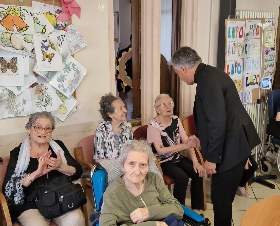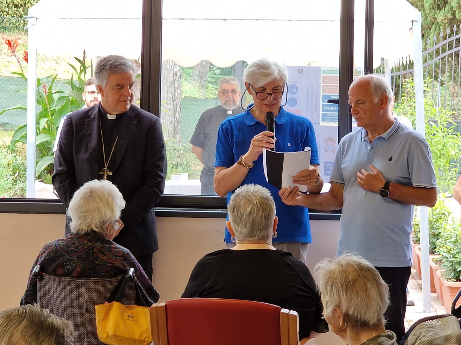 Poi la preghiera di un’altra signora ospite della struttura. Queste le sue parole: “Carissimo vescovo, grazie della sua preziosa visita. A lei vorremmo chiedere di donarci la pace e la serenità in questa stagione della nostra vita. Le chiediamo infine di pregare per noi, affinché la nostra fede non venga mai a mancare”.