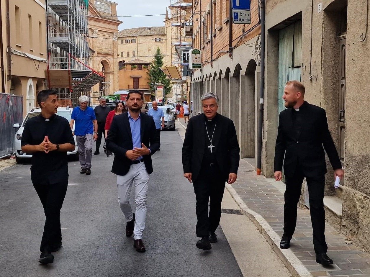 MONTALTO DELLE MARCHE – È avvenuto nella mattinata di ieri, Domenica 7 Luglio 2024, l’ingresso dell’arcivescovo Gianpiero Palmieri nella Città di Montalto delle Marche. La prima tappa del nuovo vescovo della Diocesi di San Benedetto del Tronto – Ripatransone – Montalto è stata presso la Casa di Riposo “Avvocato Galli”, dove mons. Gianpiero ha incontrato gli ospiti, accompagnato dal vicario generale don Patrizio Spina, dal parroco delle quattro comunità montaltesi don Lorenzo Bruni, dall’amico don Edmondo Massari della Diocesi di Lodi, dai diaconi Walter Gandolfi, Emanuele Imbrescia e Flaviano Natale (detto Natalino) Marinozzi e dal primo cittadino del Comune di Montalto Daniel Matricardi.