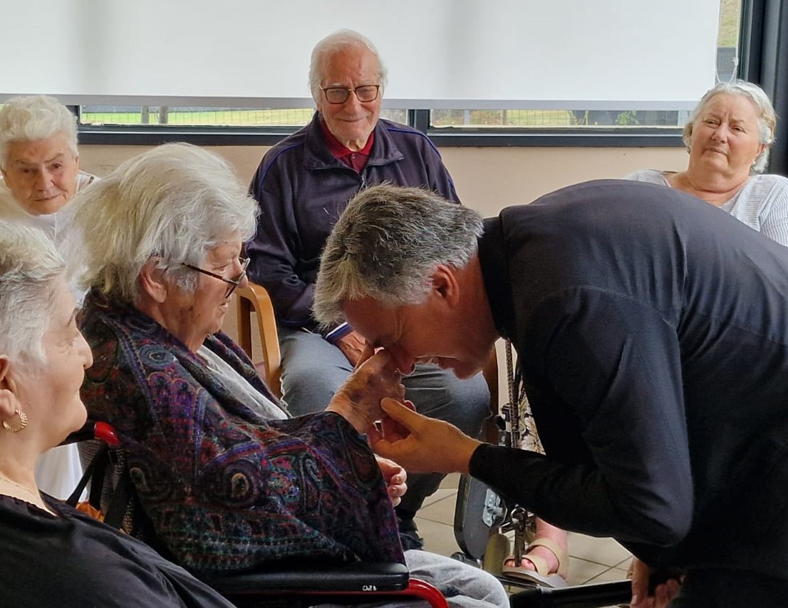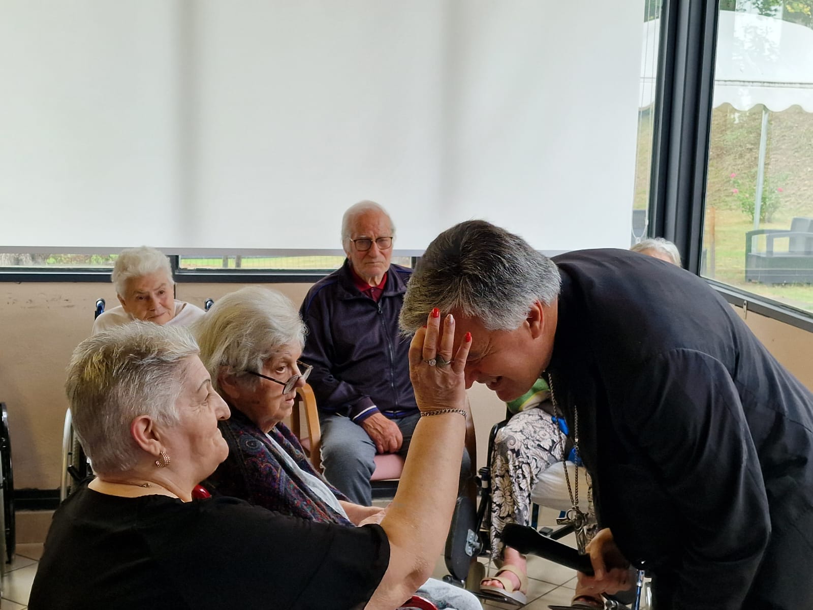 Qui il vescovo ha incontrato il mondo della fragilità, in particolare gli anziani, i malati e il personale che li assiste, salutandoli ad uno ad uno.