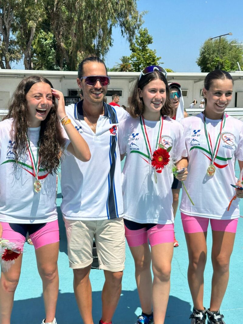 SAN BENEDETTO DEL TRONTO – Incetta di medaglie per la Pattinatori sambenedettese. Le atlete, allenate dall’olimpionico Riccardo Bugari, hanno ottenuto ottimi risultati ai Campionati italiani di pattinaggio che si sono svolti nei giorni scorsi a San Benedetto del Tronto. In particolare Ginevra Di Filippo ha vinto due ori e un argento, Carlotta Laganà un oro e un bronzo, Beatrice Errera un oro, mentre Miriam D’Olimpo è stata premiata nella top 10 della categoria r12.