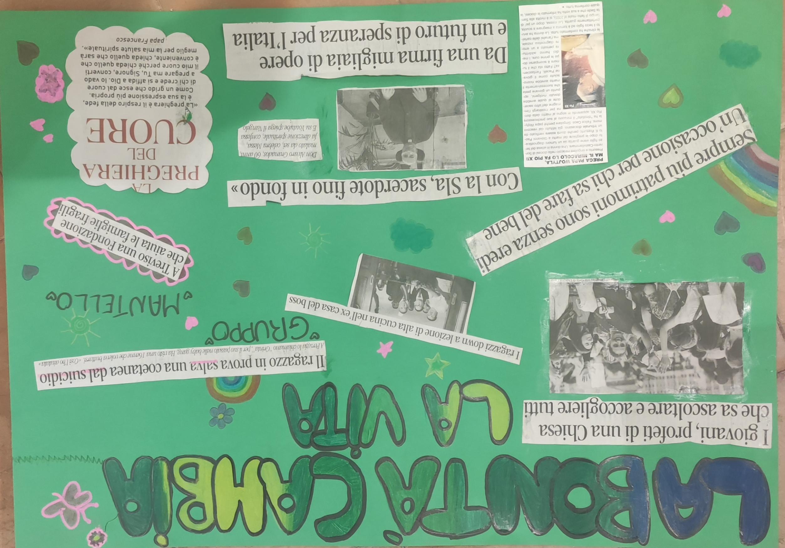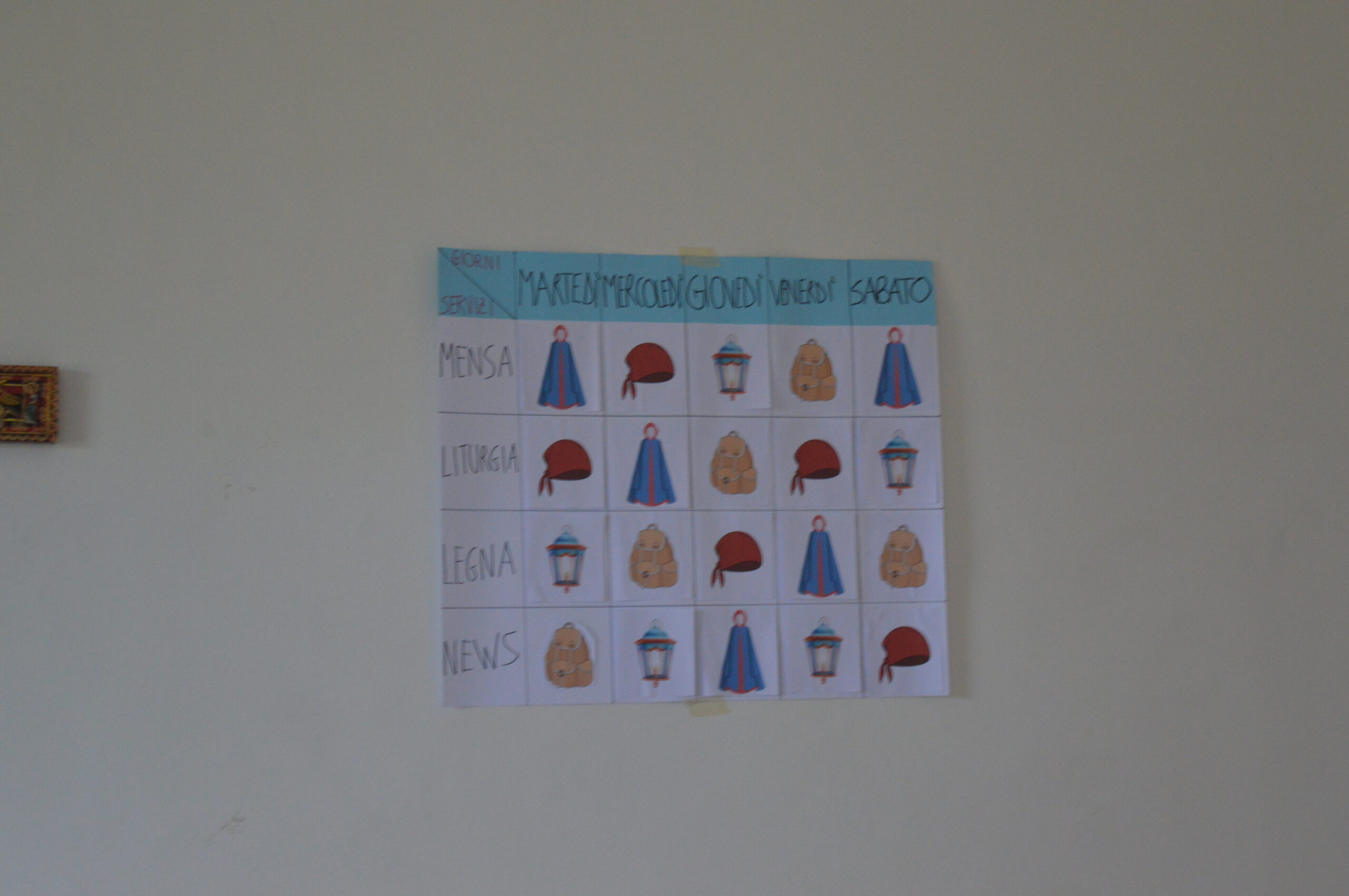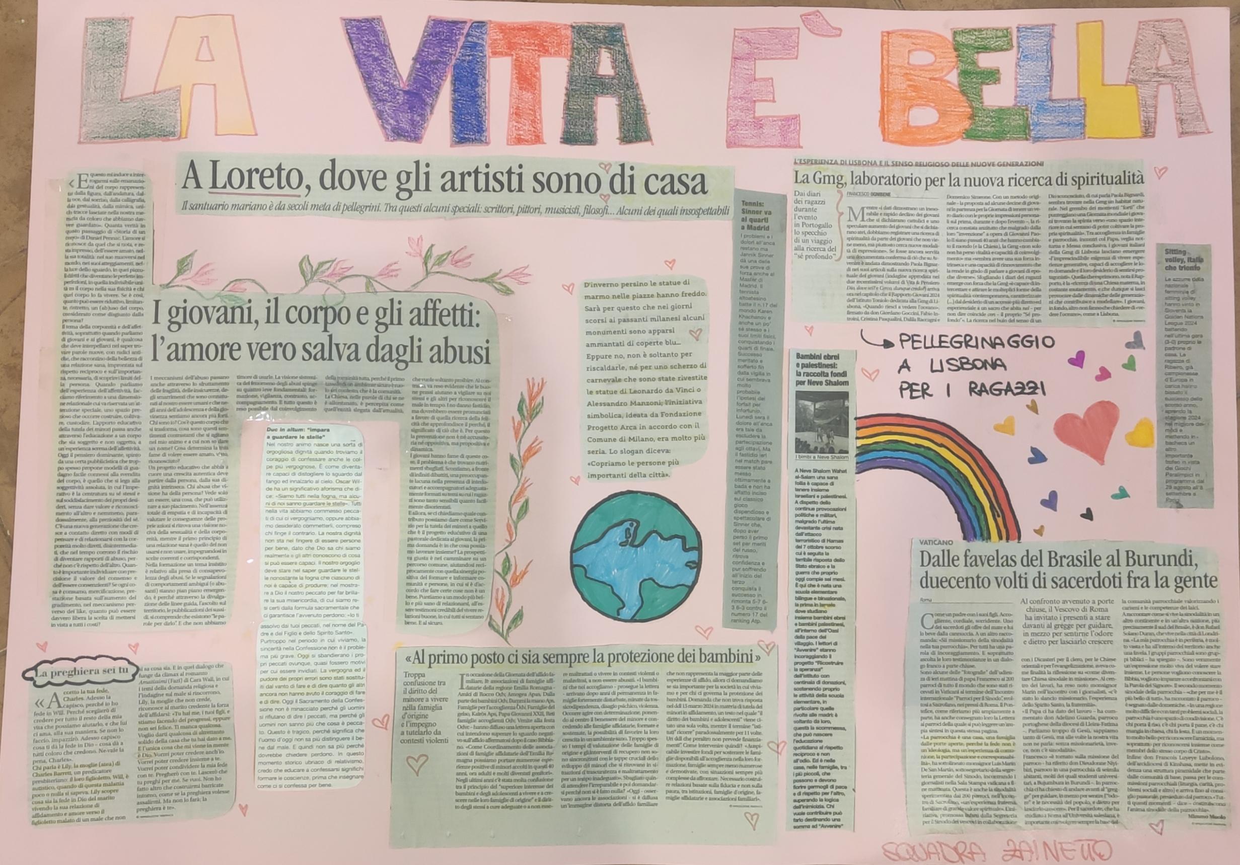 Tutti i giorni abbiamo iniziato la giornata con una preghiera in cappella dove il nostro parroco, don Nicola Spinozzi, ci ha illustrato il tema della giornata. Successivamente, in piccoli gruppi, ne abbiamo approfondito l’argomento.