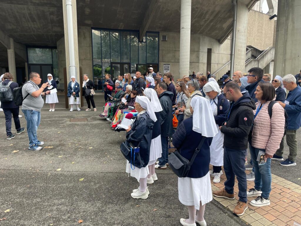 Vescovo Giampiero: “La presenza di Maria significa presenza di Chiesa, perché è lì dove la comunità cristiana si riunisce in maniera presente e invoca da Gesù risorto il dono dello Spirito Santo, come il giorno di Pentecoste. E lo Spirito Santo a Lourdes si sente, si vede sul volto dei volontari, si vede sul volto delle persone malate, si vede sul volto di tutti i pellegrini che affollano ancora oggi la città di Lourdes. Credo che sia una grazia davvero singolare essere qui.”