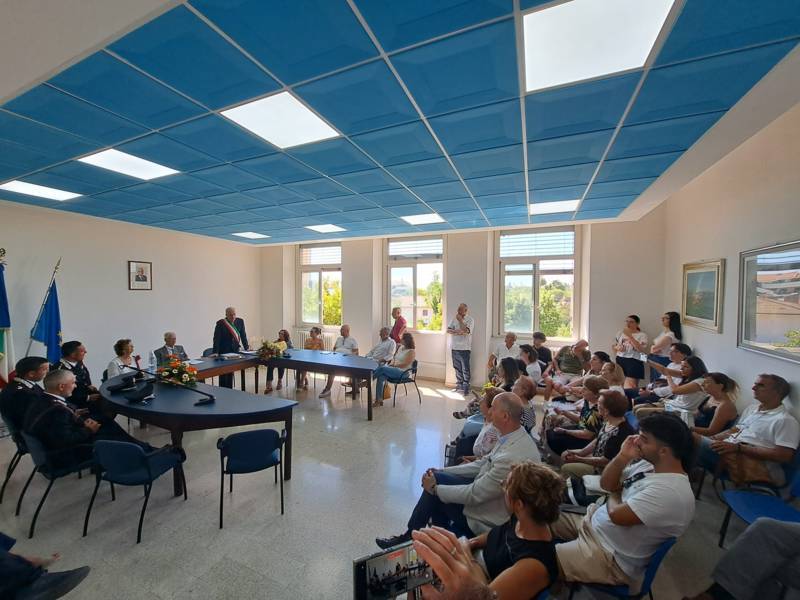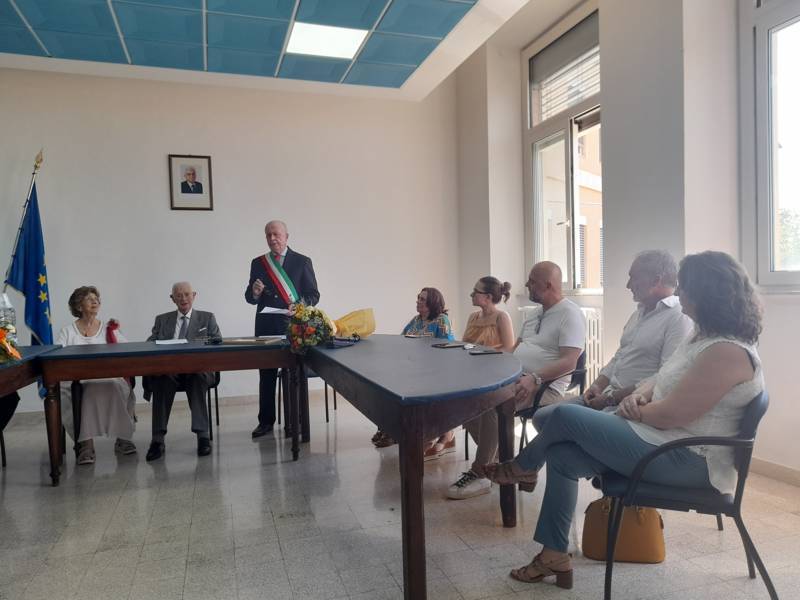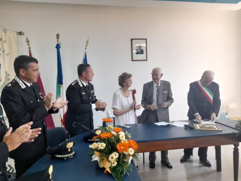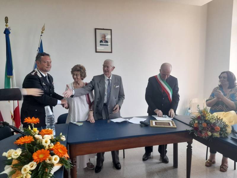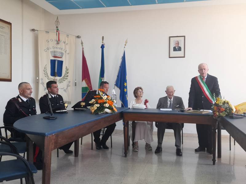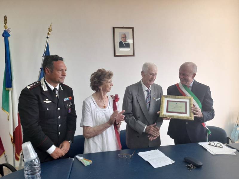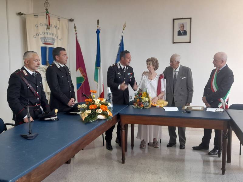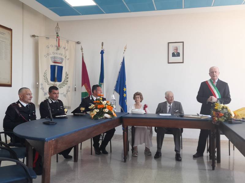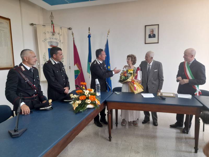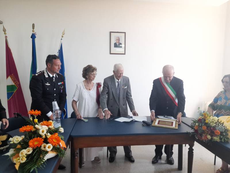 COLONNELLA – Il centenario Abramo Rossi, sottotenente a titolo onorifico dell’Arma dei Carabinieri, colonnellese di origine, eroe della Seconda Guerra Mondiale, Medaglia d’Onore come Volontario della Libertà e grande divulgatore – nelle Scuole di ogni ordine e grado – dei valori di pace, uguaglianza e libertà, ha ricevuto la cittadinanza onoraria di Colonnella. La cerimonia in cui gli è stata conferita è avvenuta Sabato 13 Luglio, alle ore 11:00, presso la Sala Consiliare del Comune di Colonnella, alla presenza del sindaco Biagio Massi, della vicesindaca Mirella Pontuti, degli assessori Stefano Bastianelli, Elia Grasso e Giorgia Piccioni e della consigliera Eleanna Pandolfelli. Presenti anche i vertici locali dell’Arma: il Colonnello Pasquale Saccone, Comandante del Comando Provinciale di Teramo; il Maggiore Gianluca Ceccagnoli, comandante della Compagnia di Alba Adriatica; il Maresciallo Ordinario Gianni Mattioli, Comandante in Sede Vacante della Stazione dei Carabinieri di Colonnella. Presenti, in rappresentanza della comunità cristiana colonnellese, anche il parroco don Dino Straccia e il priore della Confraternita Madonna del Suffragio, Guerino Reganatini. Tra il pubblico anche il dott. Matteo Di Natale, autore del libro “Storia dei Carabinieri sul territorio della Compagnia di Alba Adriatica (già Compagnia di Nereto)”, scritto insieme all’avv. Bruno Massucci e contenente anche la storia di Abramo Rossi.