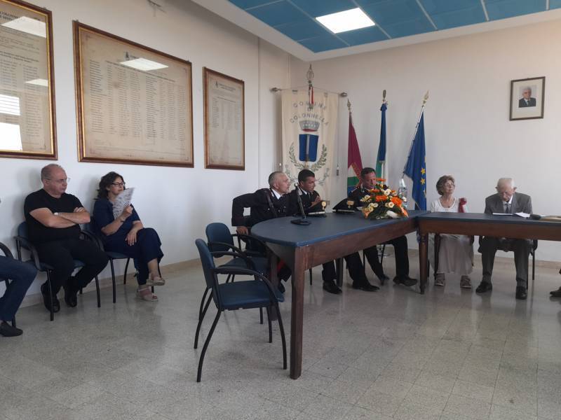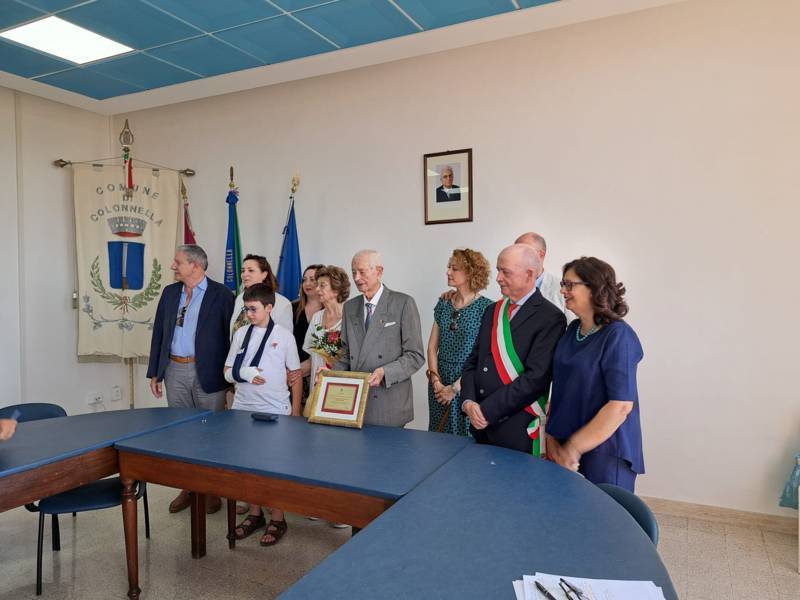 Dopo il discorso puntuale e dettagliato del sottotenente Rossi e i successivi applausi scroscianti dei presenti, il sindaco Massi ha consegnato al centenario una targa contenente la motivazione per la quale gli è stata conferita la cittadinanza onoraria di Colonnella: “per l’impegno in azioni di alto valore a vantaggio della Nazione e dell’Umanità intera, meritevole ed encomiabile”.