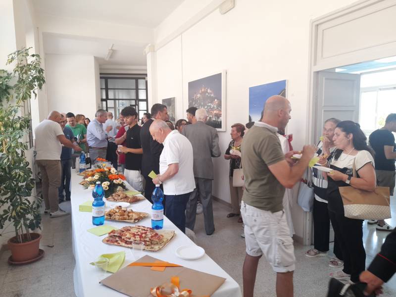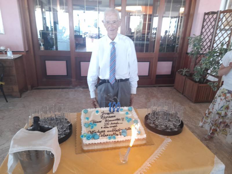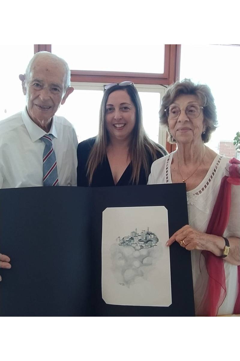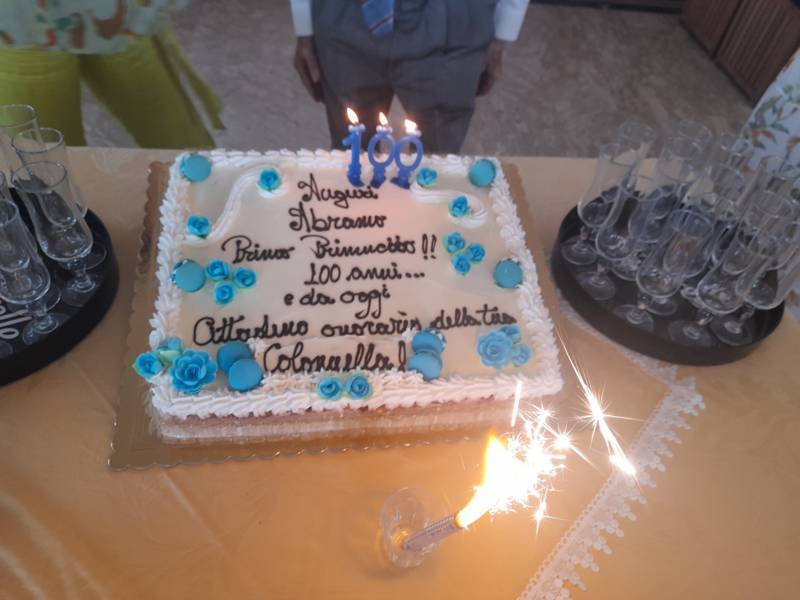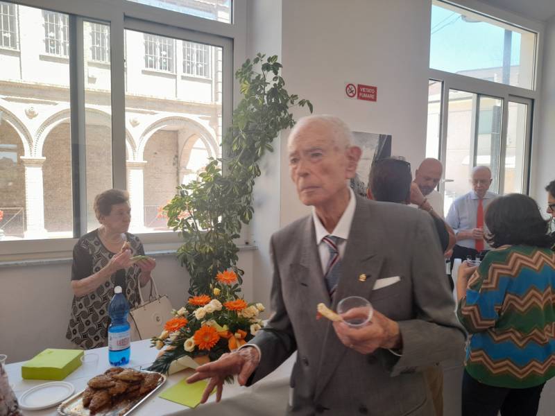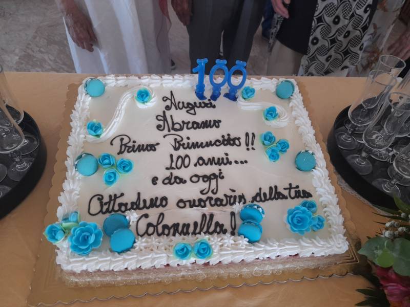 La cerimonia si è conclusa con un brindisi ed un momento di convivialità con tutti i presenti. Tra i doni che il centenario Abramo Rossi ha ricevuto c’è anche un’opera ad acquerello, dipinto dall’artista Elga Vagnoni, gentile omaggio della giornalista Di Blasio.  L’opera, che rappresenta uno scorcio di Colonnella sospesa tra le nuvole, ha un valore artistico e storico molto significativo: fu infatti realizzata per la prima edizione della rivista culturale “Frammenti“.
