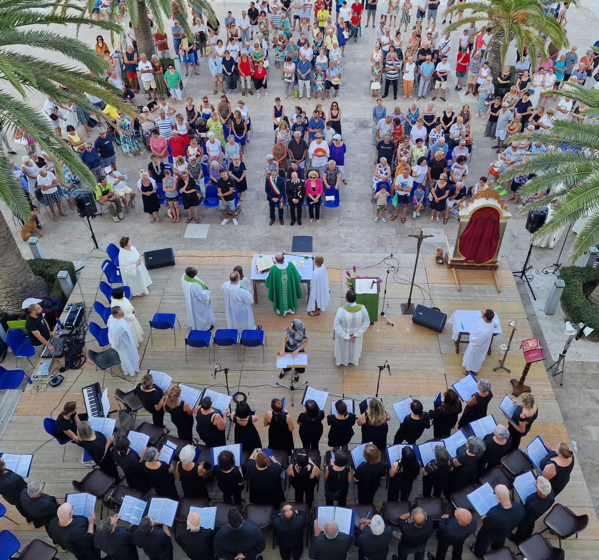 GROTTAMMARE – Domenica 14 Luglio, alle ore 19.00, presso la Piazza Kursaal di Grottammare, si è tenuta la solenne celebrazione Eucaristica presieduta da Mons. Federico Pompei durante la quale la Corale Sisto V ha eseguito la “Missa Brevis di Jacob de Haan”.