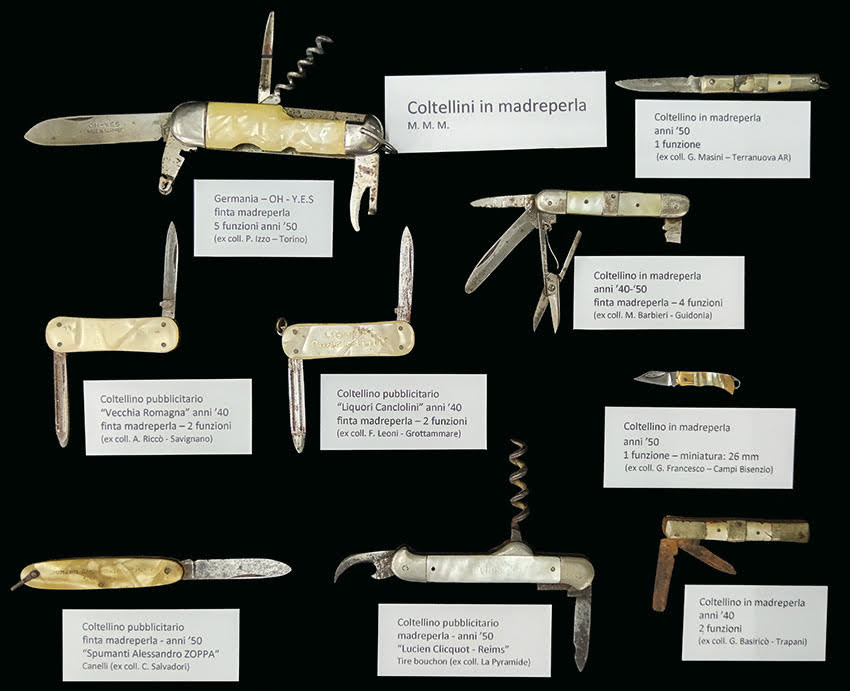 Tra le novità di questi giorni vi è l’esposizione di una piccola sezione dedicata a coltellini in madreperla, soprattutto degli anni ’50; alcuni sono coltellini pubblicitari, altri sono multiuso, italiani e stranieri.