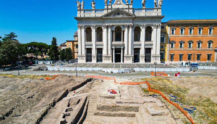 Una scoperta archeologica sensazionale che riscrive la topografia medievale di Roma. Ma che non altera il cronoprogramma del Giubileo. Durante i lavori per il rifacimento di piazza san Giovanni in Laterano sono state rinvenute le mura di fortificazione – databili tra il IX e il XIII secolo d.C. – del Patriarchium, l’antica sede papale prima dello spostamento ad Avignone. Ma nessun allarme in vista del Giubileo. A dirlo è il sindaco di Roma Roberto Gualtieri, che ieri, 18 luglio, ha visitato gli scavi insieme al delegato del Papa, l’arcivescovo Rino Fisichella, all’assessore ai Lavori pubblici Ornella Segnalini e a Mirella Serlorenzi della Soprintendenza Speciale di Roma.