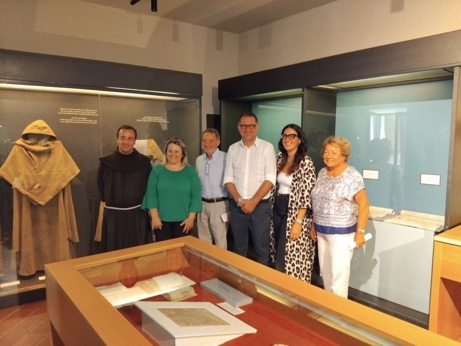 Ha preso poi la parola la Direttrice dei Musei Sistini del Piceno, Paola Di Girolami: “Io rivolgo il mio grazie al sindaco Loggi, all’Assessora Iozzi e a padre Marco. Quest’ultimo mi diede la notizia della necessità di spostare il patrimonio culturale che si trovava all’interno del convento. Valutai come fare, mi sembrò subito un lavoro molto delicato, seppi che avremmo dovuto togliere persino le vetrine, un qualcosa che ci avrebbe richiesto molto impegno. Tra le varie location da scegliere, questa ci sembrò la più adatta. In fondo già molti beni di San Giacomo si trovano nel Museo dei Codici. Per sistemare il patrimonio del convento, abbiamo dovuto ricollocare in modo diverso ciò che già si trovava qui. Visitando il Museo ci si ritroverà ad entrare in rapporto con la spiritualità di San Giacomo della Marca attraverso i Codici e gli oggetti da lui usati e con la “magnificenza” di un grande pontefice come Sisto V. Quando ci si occupa di risistemare un allestimento, non è semplicemente apporre delle cose, ma bisogna collocarle con il giusto senso, con uno specifico percorso. Dopo tanti anni ho riscritto le didascalie in modo diverso da come erano, perché qualcosa con il tempo è cambiato, sono cambiate le didascalie e molto altro. Ci siamo occupati anche di rivedere gli indumenti, abbiamo chiamato per esempio anche una storica del tessuto come Lucia Zannini. È stato un lavoro meticoloso ed attento”.