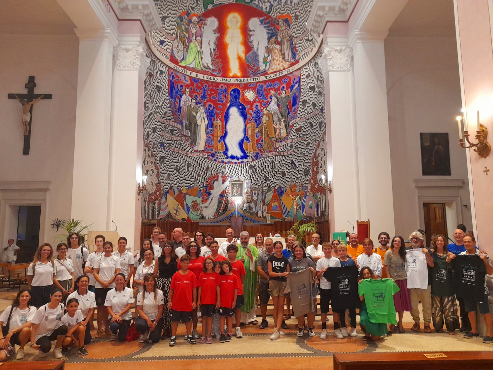 SAN BENEDETTO DEL TRONTO – “Sono veramente contento di vedere qui i rappresentanti dei vari quartieri di San Benedetto del Tronto e delle associazioni sportive che operano in città!”. Si è aperta con questo saluto del parroco don Patrizio Spina, la celebrazione eucaristica delle ore 18:30 di Domenica 21 Luglio, presso la Cattedrale Santa Maria della Marina in San Benedetto del Tronto. L’appuntamento, dal titolo “Giocando oltre i confini, per la vita”, rientra tra le iniziative programmate dalla parrocchia nell’ambito dei festeggiamenti in onore della Madonna della Marina.