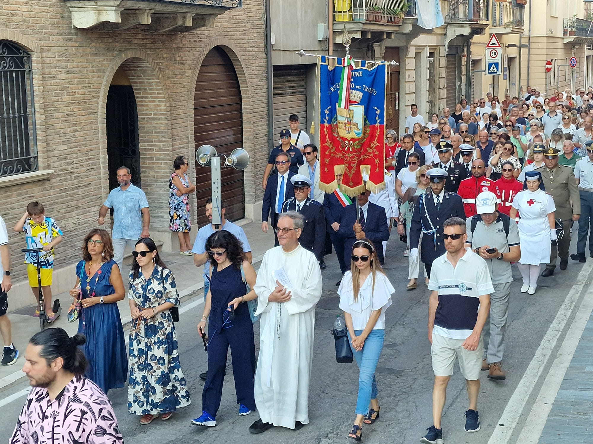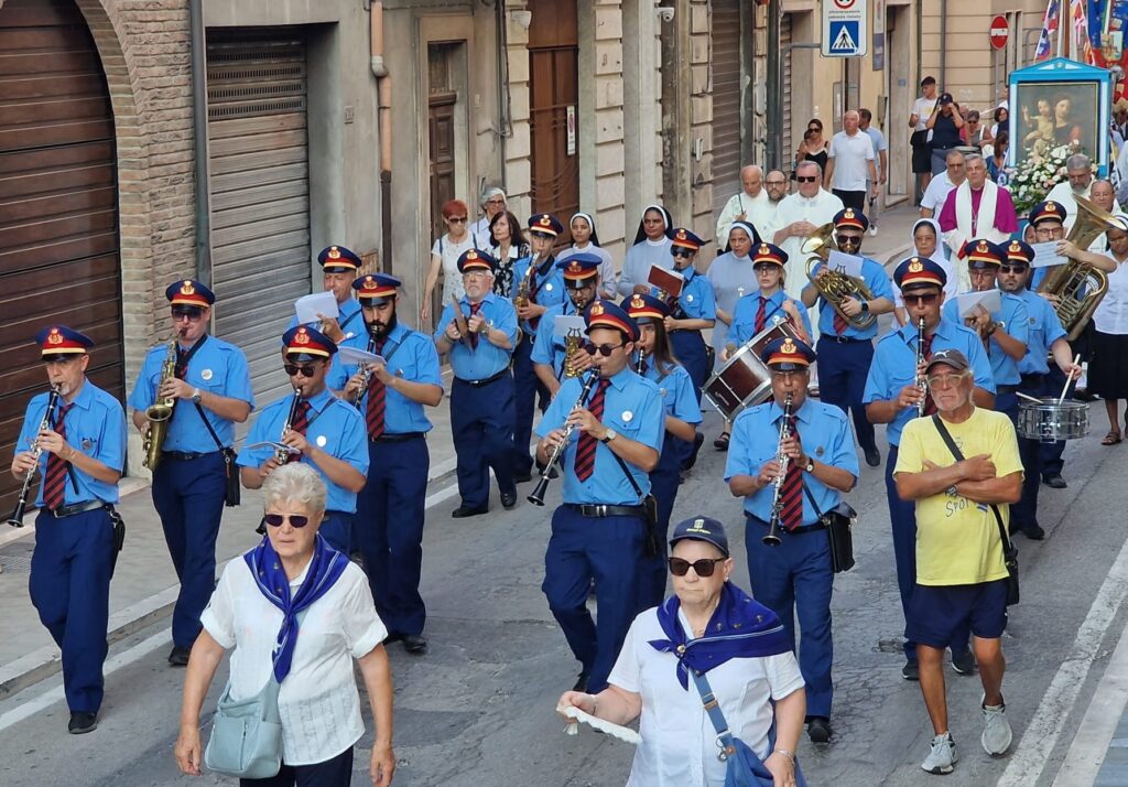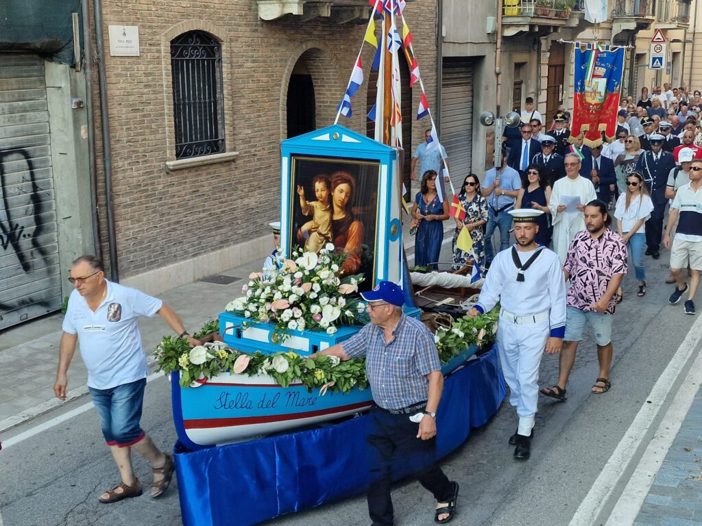 Come da tradizione, la comunità dei fedeli si è radunata numerosa presso la Banchina Malfizia per dare vita alla consueta processione per le vie della città con l’effigie di Santa Maria della Marina trasportata su una barca colma di fiori e scortata da alcuni pescatori e da alcune giovani leve della Capitaneria di Porto di San Benedetto del Tronto. Il tragitto, animato con la preghiera e la musica della Banda della Città di San Benedetto del Tronto, si è concluso presso piazza Nardone, davanti alla Cattedrale Santa Maria della Marina, dove si è celebrata la Santa Messa alla presenza dei fedeli e di tutte le autorità intervenute.