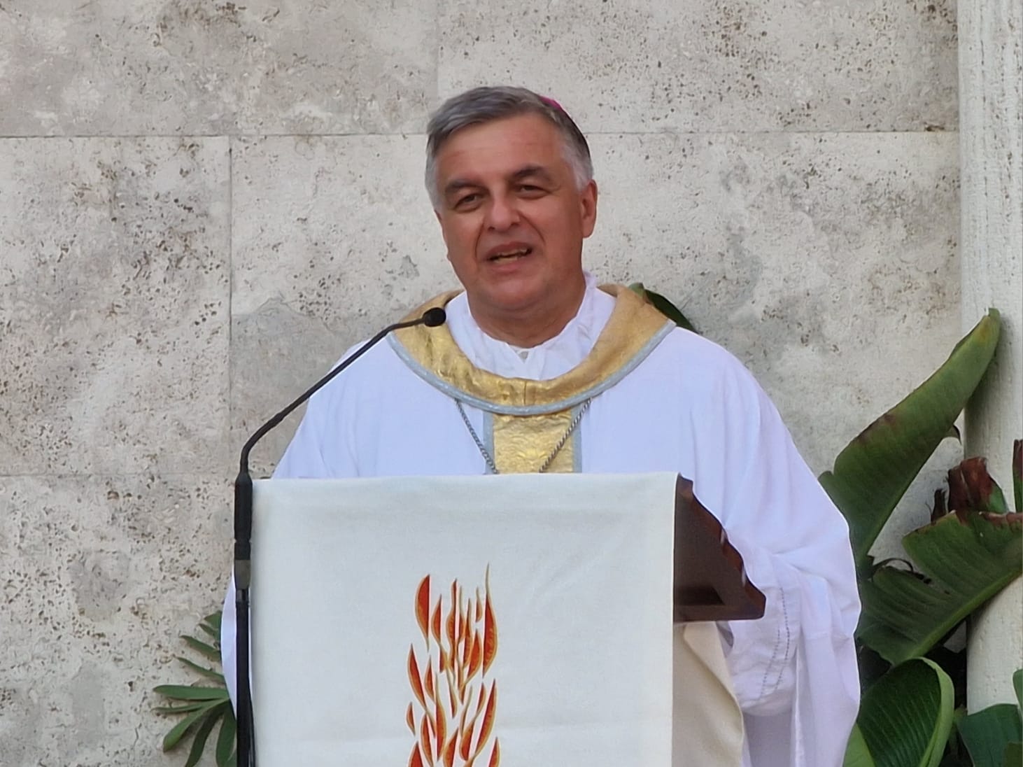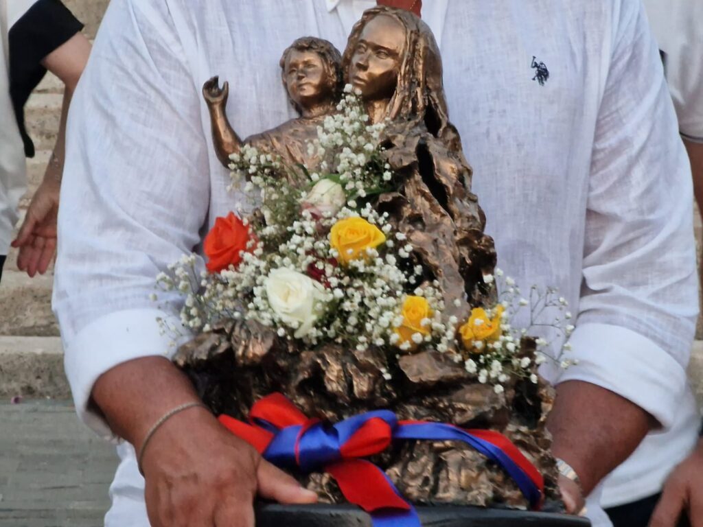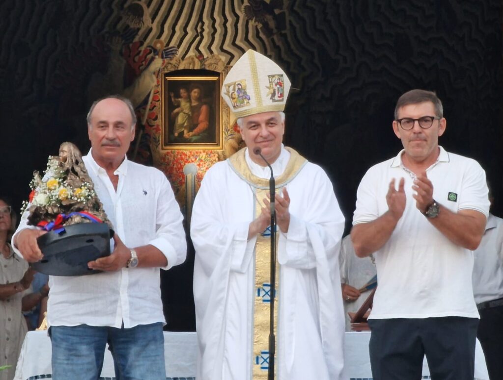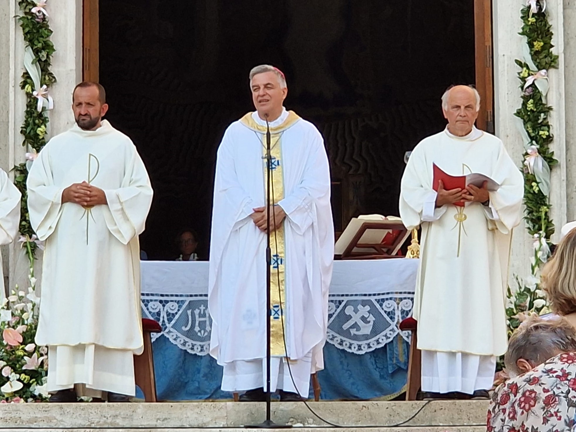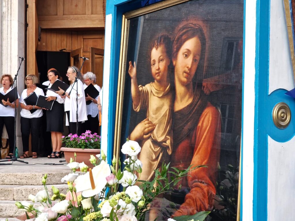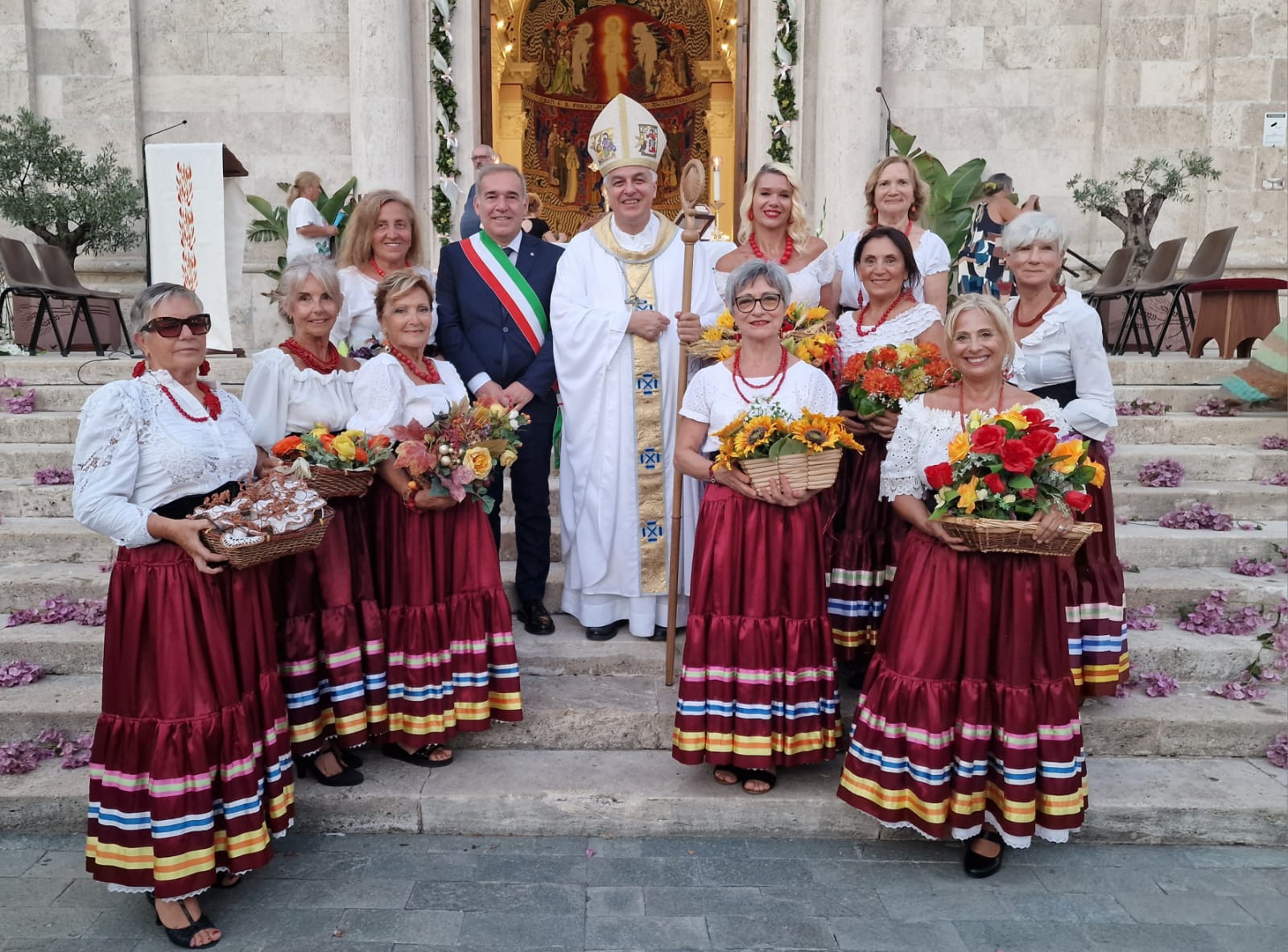 Queste le parole del vescovo Gianpiero Palmieri durante l’omelia: “È molto bello celebrare qui, nella piazza davanti alla Cattedrale, dopo aver vissuto una processione insieme all’immagine della Stella del Mare. Come ci siamo detti anche ieri, celebrando l’Eucaristia al porto, Maria ci aiuta ad alzare lo sguardo. E lo fa personalmente, con ciascuno di noi, ma anche a livello comunitario, come Chiesa. Ci fa guardare le cose con un’orizzonte più ampio, ampio come quello del mare, evitando di ripiegarci nel dolore, nell’autocommiserazione, nell’essere presi da tante cose. Maria ci insegna questo perché il Signore lo ha fatto con Lei, proprio nel momento del dolore, sotto la croce, quando Gesù le ha detto di alzare lo sguardo, perché il suo dolore si sarebbe trasformato in una maternità universale, grande come il mare. Noi, come Chiesa, siamo chiamati ad imitarla: anche noi siamo chiamati ad essere madre, ad aver cura di tutti gli uomini, per mandato del Signore, continuando la Sua opera. Per questo è bellissimo girare con Maria e il Signore per le strade e sentire che niente di ciò che gli uomini e le donne vivono ci è estraneo, niente di quello che avviene nelle strade, nelle piazze, nelle case della nostra città, nel cuore di tutti gli abitanti, di chi ci vive e ci lavora, di chi ci passa per un caso o ci rimane per vacanze, ci è estraneo. E siamo chiamati ad annunciare, a testimoniare a tutti l’Amore, la tenerezza di Dio, attraverso parole di accoglienza e di speranza“.