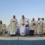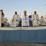 SAN BENEDETTO DEL TRONTO – “Maria , che qui vediamo accanto all’ Altare, sotto la Croce teneva gli occhi bassi per non vedere la morte del Figlio”. Con queste parole il Vescovo della Diocesi di San Benedetto del Tronto – Ripatransone – Montalto, Mons. Gianpiero Palmieri, ha iniziato la sua omelia nella Celebrazione Eucaristica al porto, al rientro dalla tradizionale processione di barche in mare, Sabato 27 Luglio 2024, in occasione della festa della Madonna della Marina.