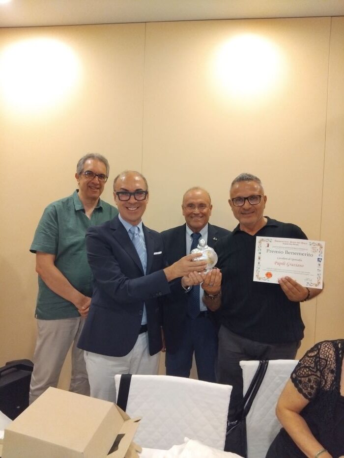 Durante la serata culinaria dedicata al pesce, l’Ente ha consegnato a Graziano Papili, membro del Consiglio direttivo, il Premio benemerito: Cavaliere di Sponsalia. Un premio più che meritato, per la sua pazienza, dedizione e passione verso l’Associazione. Cavaliere di Sponsalia perché, come si legge nella pergamena, Graziano “con la sua presenza costante, si è reso sempre disponibile e attento alle finanze dell’Ente Associazione Palio del Duca, ricoprendo il ruolo di consigliere – cassiere”.