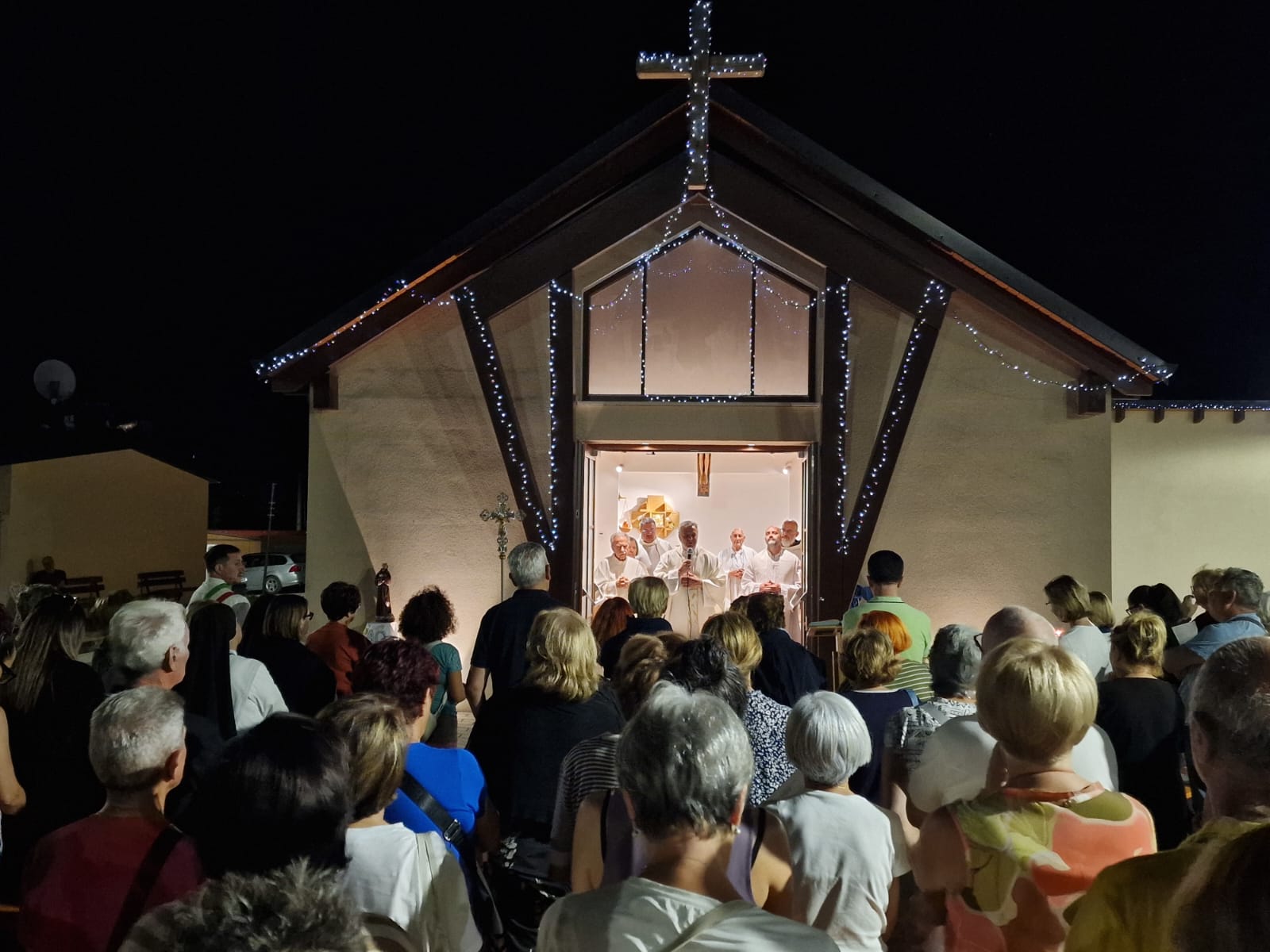 Giunti presso la chiesa del Borgo di Arquata, adornata di luci abbaglianti, come a voler portare la Luce Vera tra gli abitanti delle casette di legno costruite dopo il terremoto, i fedeli hanno avuto l’opportunità di vivere il Sacramento della Confessione, grazie alla presenza dei numerosi sacerdoti. A seguire è stata celebrata la Santa Messa all’aperto, mentre un bel venticello soffiava sui volti dei fedeli intervenuti: per lo più anziani, ma anche molti adulti, alcune giovani coppie e ragazzi.