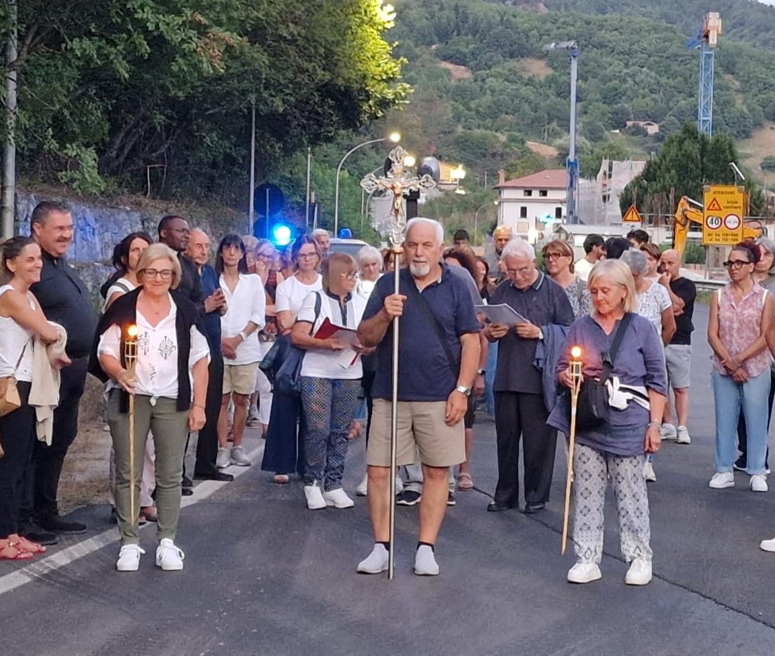 I fedeli, a partire dal primo cittadino di Arquata del Tronto Michele Franchi, si sono ritrovati a partire dalle ore 20:20 a Trisungo per poi partire in processione alle ore 20:30 verso il Borgo di Arquata del Tronto. Lungo il cammino, vista la speciale ricorrenza del Perdono di Assisi, sono stati letti e meditati alcuni passi della Parola di Dio sul tema della misericordia, che sono stati scelti rielaborando la sintesi delle schede del cammino sinodale della Diocesi di Ascoli Piceno. A preparare e coordinare le meditazioni è stata Iride Spalazzi, mentre la lettura è stata affidata ai fedeli di tutte e tre le cittadine della Vicaria della Montagna. Anche ad animare con il canto la processione è stata una rappresentanza dei cori di Acquasanta Terme, Arquata del Tronto e Roccafluvione. Un bel lavoro di squadra, che si è tradotto in momenti di preghiera, meditazione e profonda comunione.