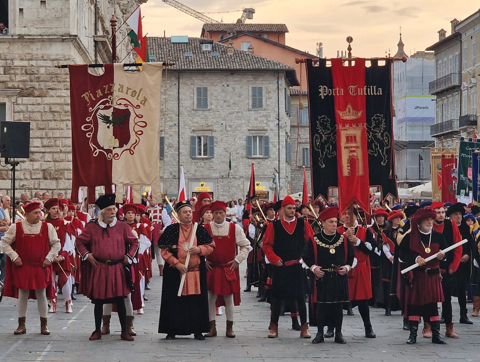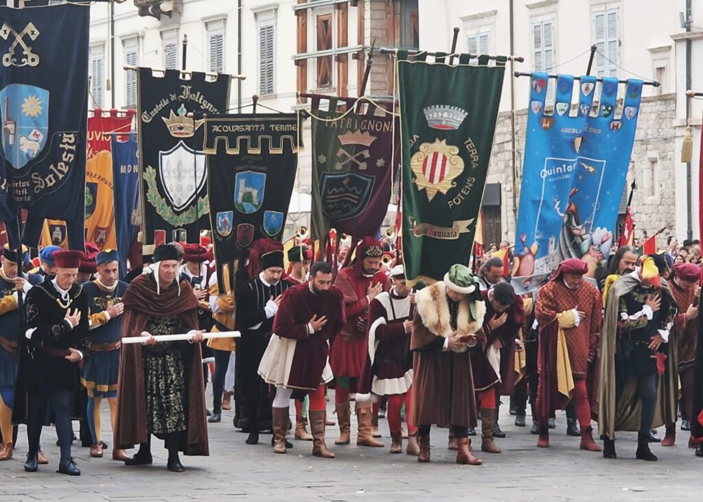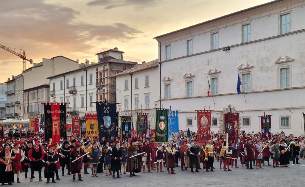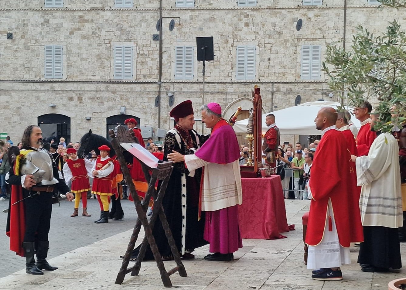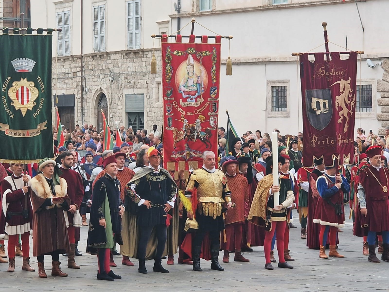 ASCOLI PICENO – Ieri, sabato 3 Agosto 2024, a partire dalle ore 20:00, si è tenuta ad Ascoli Piceno, in piazza Arringo, dinanzi alla Cattedrale di Sant’Emidio, la Celebrazione della Parola presieduta dall’Arcivescovo Gianpiero Palmieri, durante la quale sono stati benedetti i Sestieri della Quintana e offerti i ceri a Sant’Emidio.
