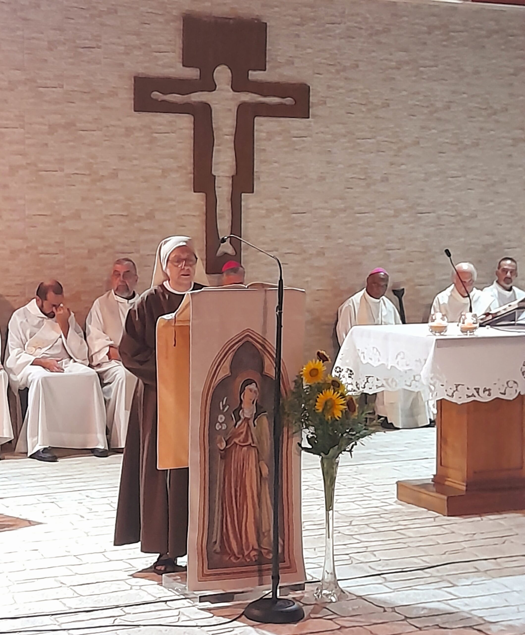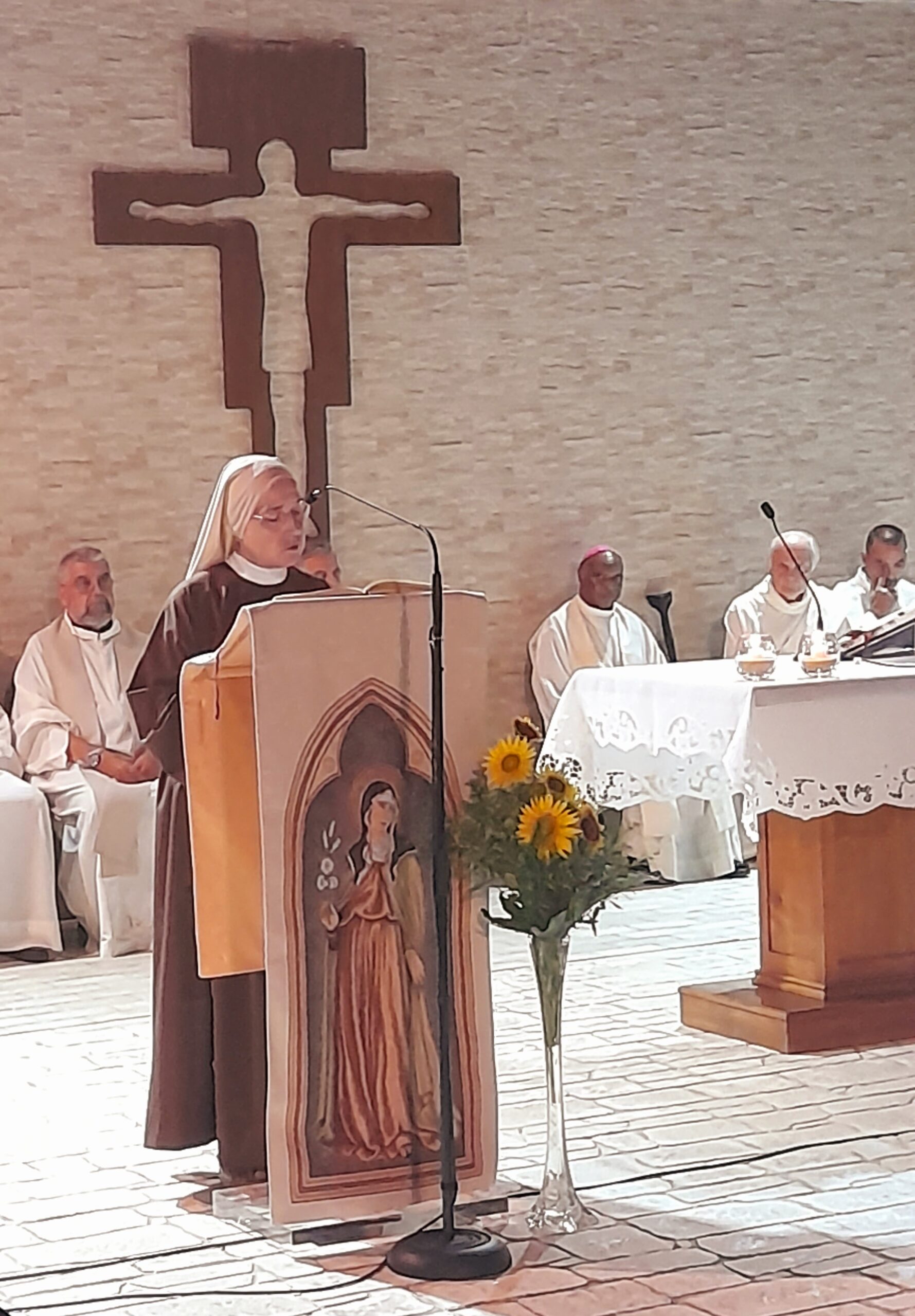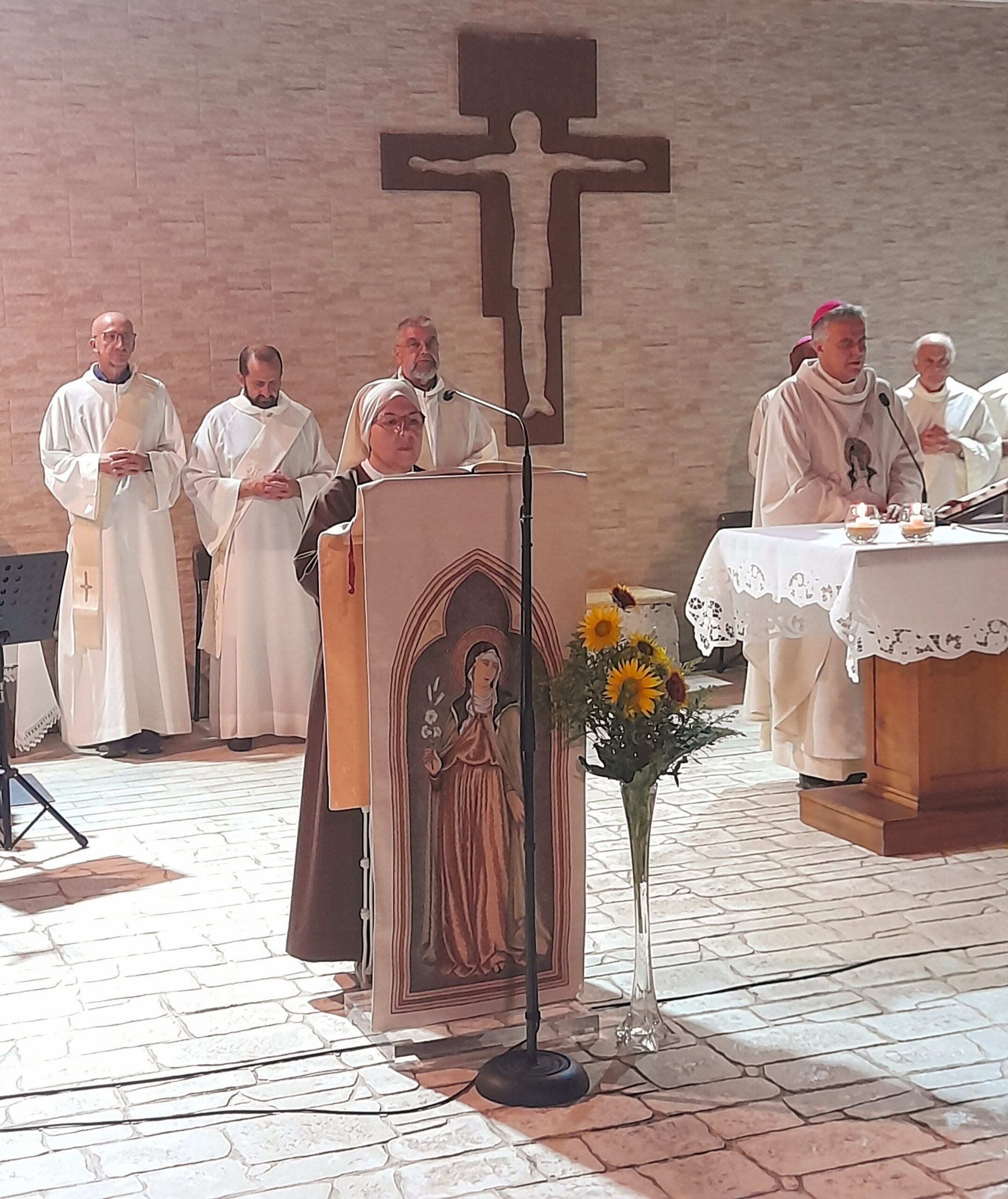 Prima della benedizione finale, l’abbadessa delle Sorelle Clarisse, ha effettuato alcuni ringraziamenti: oltre al vescovo Gianpiero, ai sacerdoti e diaconi presenti e ai fedeli intervenuti, Suor Graziana Latella ha espresso la sua gratitudine in particolare alla Corale di Santa Felicita di Colli del Tronto diretta dalla M° Rosella Travaglini, ai giovani musicisti di zona diretti dalla M° Serena Zeppilli e ai parrocchiani delle comunità Madonna del Suffragio e Sant’Antonio di Padova, che hanno contribuito a sistemare le luci e l’impianto di amplificazione.