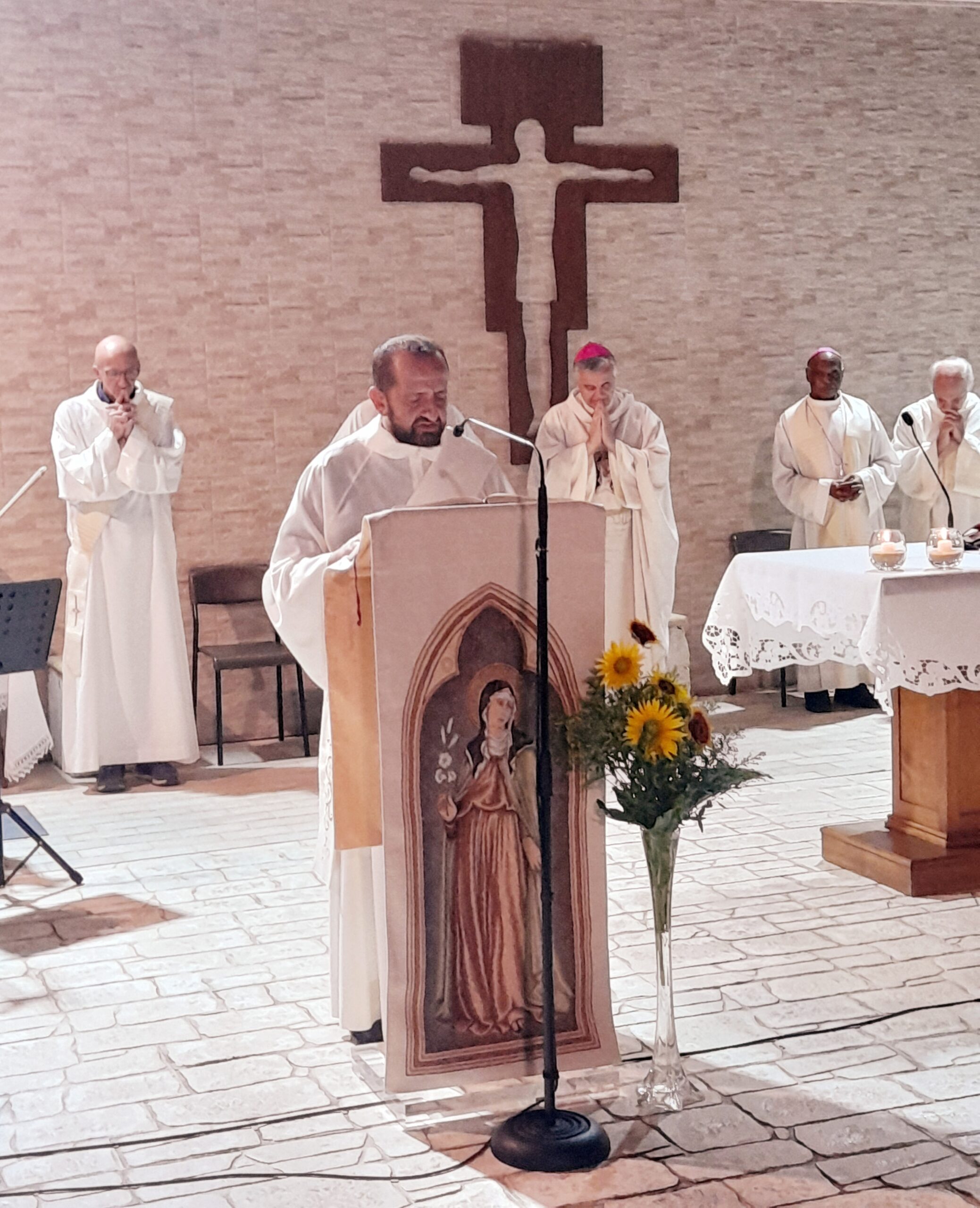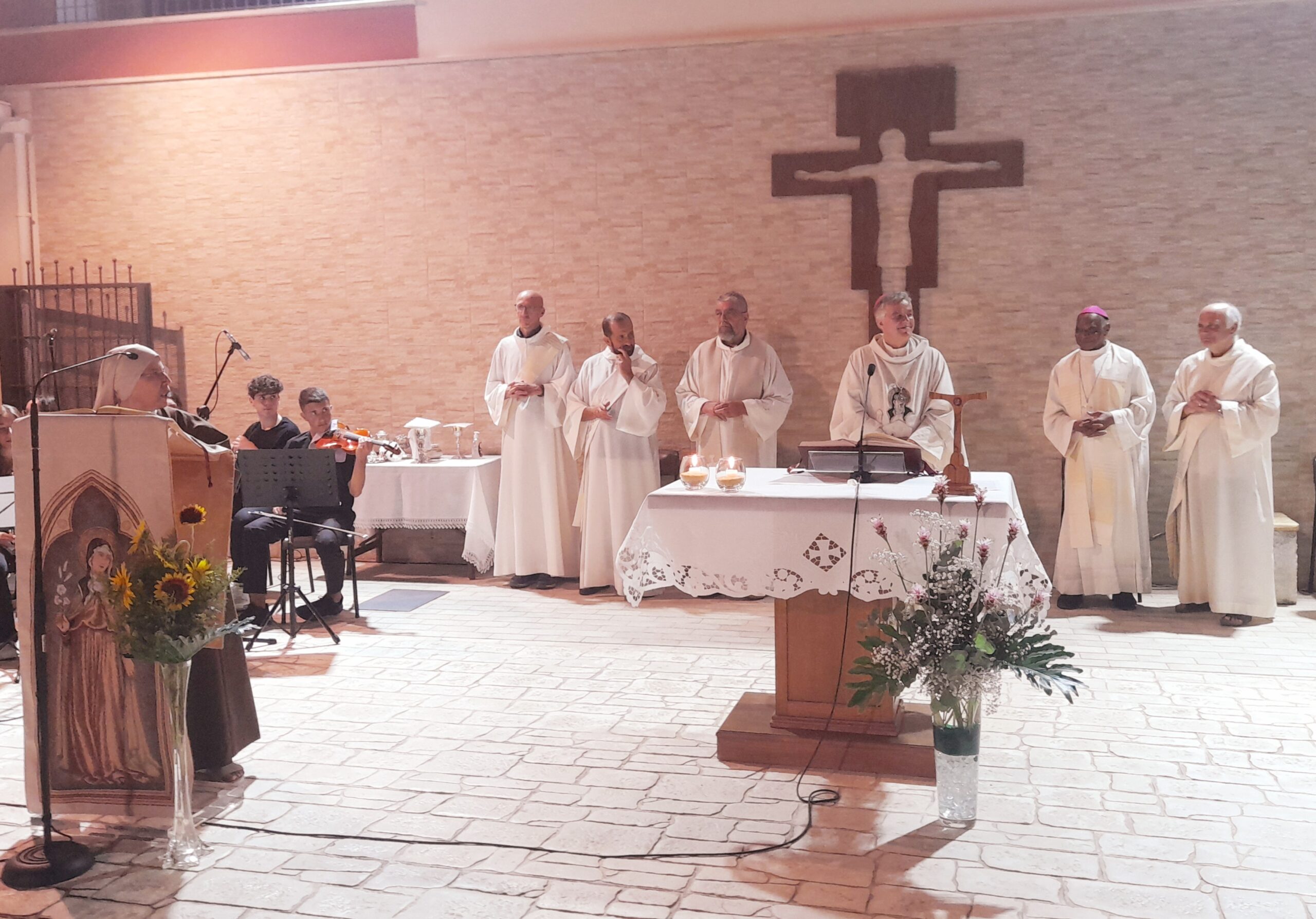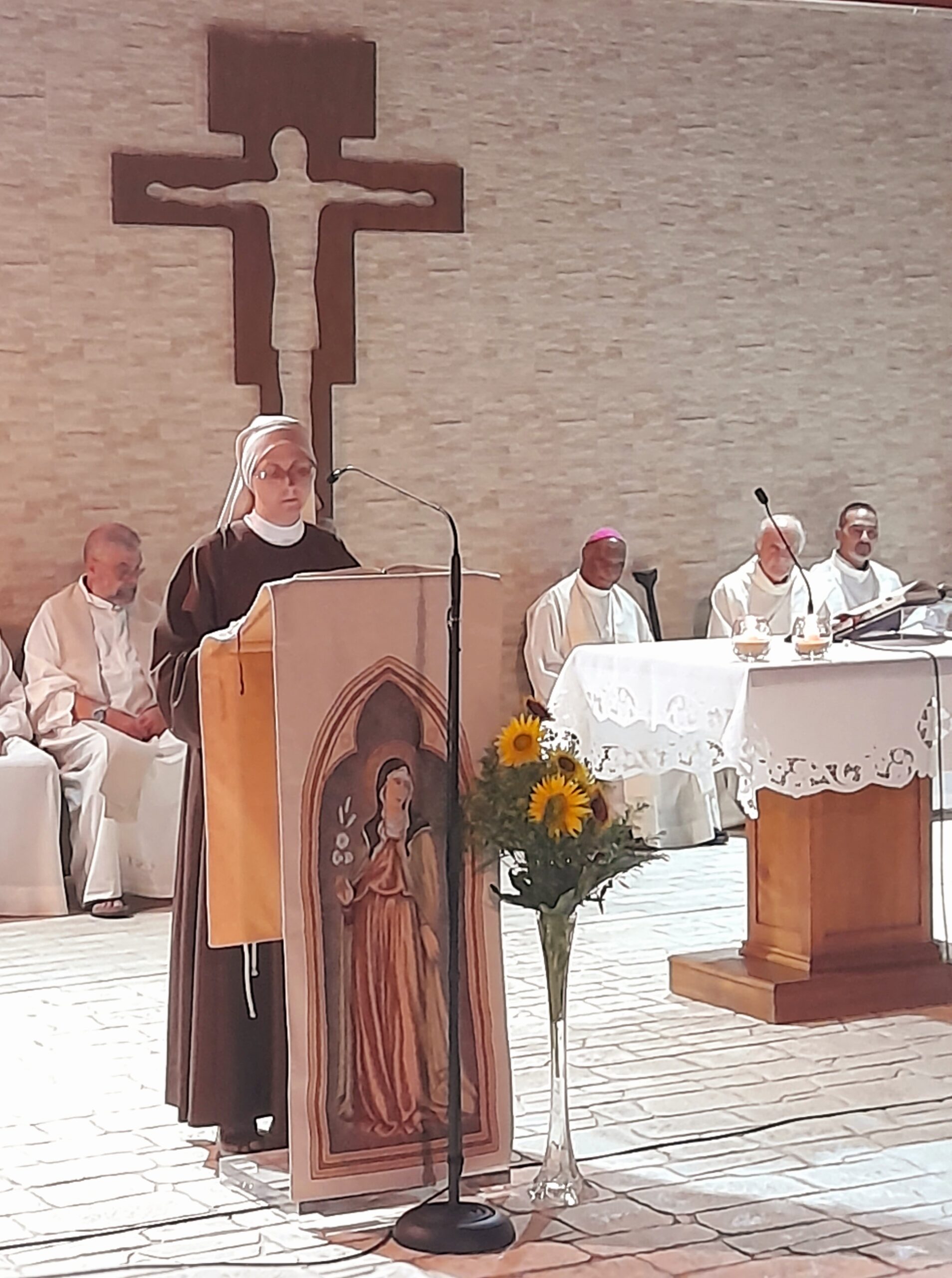 Prima della benedizione finale, l’abbadessa delle Sorelle Clarisse, ha effettuato alcuni ringraziamenti: oltre al vescovo Gianpiero, ai sacerdoti e diaconi presenti e ai fedeli intervenuti, Suor Graziana Latella ha espresso la sua gratitudine in particolare alla Corale di Santa Felicita di Colli del Tronto diretta dalla M° Rosella Travaglini, ai giovani musicisti di zona diretti dalla M° Serena Zeppilli e ai parrocchiani delle comunità Madonna del Suffragio e Sant’Antonio di Padova, che hanno contribuito a sistemare le luci e l’impianto di amplificazione.