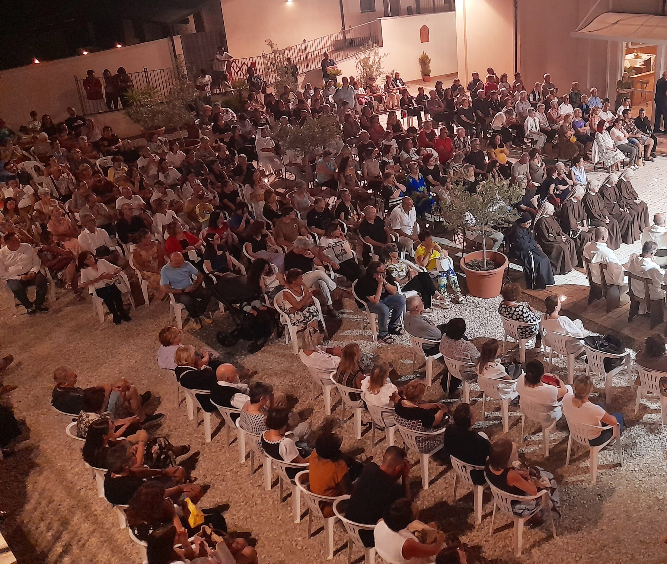 SAN BENEDETTO DEL TRONTO – Si sono conclusi ieri, Domenica 11 Agosto 2024, con la Celebrazione Eucaristica delle ore 21:15 presso il Monastero Santa Speranza in San Benedetto del Tronto, i festeggiamenti in onore di Santa Chiara. La Messa, presieduta dall’arcivescovo Gianpiero Palmieri, è stata concelebrata dal vescovo emerito Basile Tapsoba, dal vicario generale don Patrizio Spina, da alcuni sacerdoti e diaconi provenienti dalle due Diocesi del Piceno, dalle sorelle Clarisse (Suor Graziana, Suor Riccarda, Suor Patrizia, Suor Massimiliana e Suor Sara) e dal numeroso popolo di Dio accorso per l’occasione.