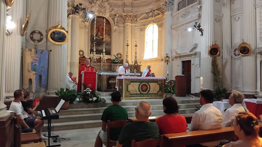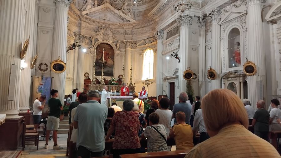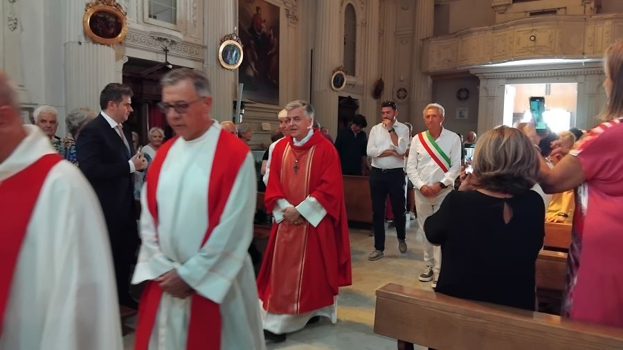 MONTEDINOVE – “Carissima comunità di Montedinove, oggi siamo riuniti in questa chiesa per festeggiare il santo Patrono, Lorenzo”. Con queste parole S.E. mons. Gianpiero Palmieri, vescovo delle Diocesi di Ascoli Piceno e di San Benedetto del Tronto – Ripatransone – Montalto, ha introdotto la Celebrazione Eucaristica, da lui presieduta e concelebrata dal parroco padre Gabriele Lupi, Sabato 10 Agosto 2024, alle ore 11:00, presso la chiesa San Lorenzo Martire in Montedinove, in occasione della festa del Santo spagnolo, Patrono dell’omonima Parrocchia e della Città marchigiana.