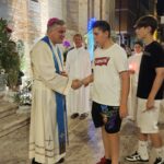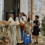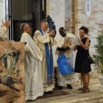 Una numerosa folla di fedeli ha riempito il sagrato di San Pio V. Al termine c’è stata una festa con un brindisi e un bel momento di condivisione con il vescovo. Erano presenti tutti gruppi parrocchiali, l’AzioneCattolica, gli Scout, Il Rinnovamento nello Spirito, l’Adorazione Eucaristica col gruppo di preghiera di Maddalena di Perno, la Confraternita dell’Addolorata, il Cammino Neocatecumenale, le Francescane e altri gruppi e movimenti: impossibile citare tutti! Vi erano tanti ragazzi e giovani e i canti sono stati animati dal Coro parrocchiale. Hanno preso parte a questo momento di condivisione anche molti turisti, tra i quali anche alcuni provenienti da Roma, che conoscevano già  il vescovo Gianpiero e che si sono commossi ed emozionati nel ritrovarlo a Grottammare e nella nostra Diocesi.