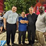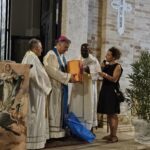 La segretaria del Consiglio Pastorale, Paola Di Felice, ha portato tre doni al vescovo Gianpiero a nome della comunità : un paio di scarponcini da trekking, un cappellino e uno zaino, segno del “cammino” intrapreso e in itinere. Presenti il vicario parrocchiale don Claudio Capecci e il collaboratore parrocchiale don Joseph Bahane.